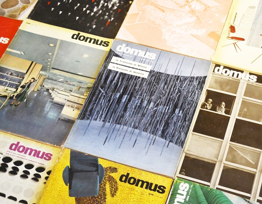 ジオ・ポンティによって1928年に創刊されたイタリアのデザイン雑誌「ドムス」の貴重なバックナンバー(古本)を150冊以上取り揃えている。