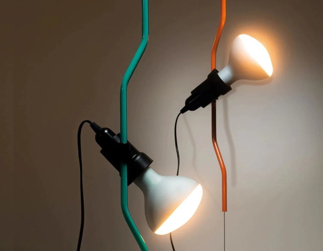 1971年にAchille Castiglioni & Pio Manzu(アッキレ・カスティリオーニ & ピオ・マンズー)によってデザインされたフロアランプ「Parentesi(パレンテジ)/Flos(フロス)」。50周年記念カラーとして発売した「ターコイズ」「オレンジ」を展示・販売。パレンテジは、1979年にコンパッソ・ドーロを受賞しています。