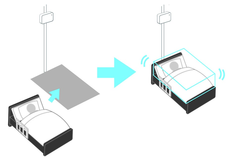 今までのシルエット見守りセンサは、職員が入居者・入院患者のベッドを移動して元の位置に戻した場合、センサ側の見守りエリアを再設定する必要があり、見守りを再開するまでに時間がかかっていました。ベッド追従設定を有効にして頂くと、ベッドの位置がずれる・ベッドの高さを変更した場合でも、シルエット見守りセンサがベッドを見つけ、見守りエリアの位置や高さを調整。ベッドを移動して再び元の位置に戻せば、見守りエリアを再設定しなくてもご利用頂けます。