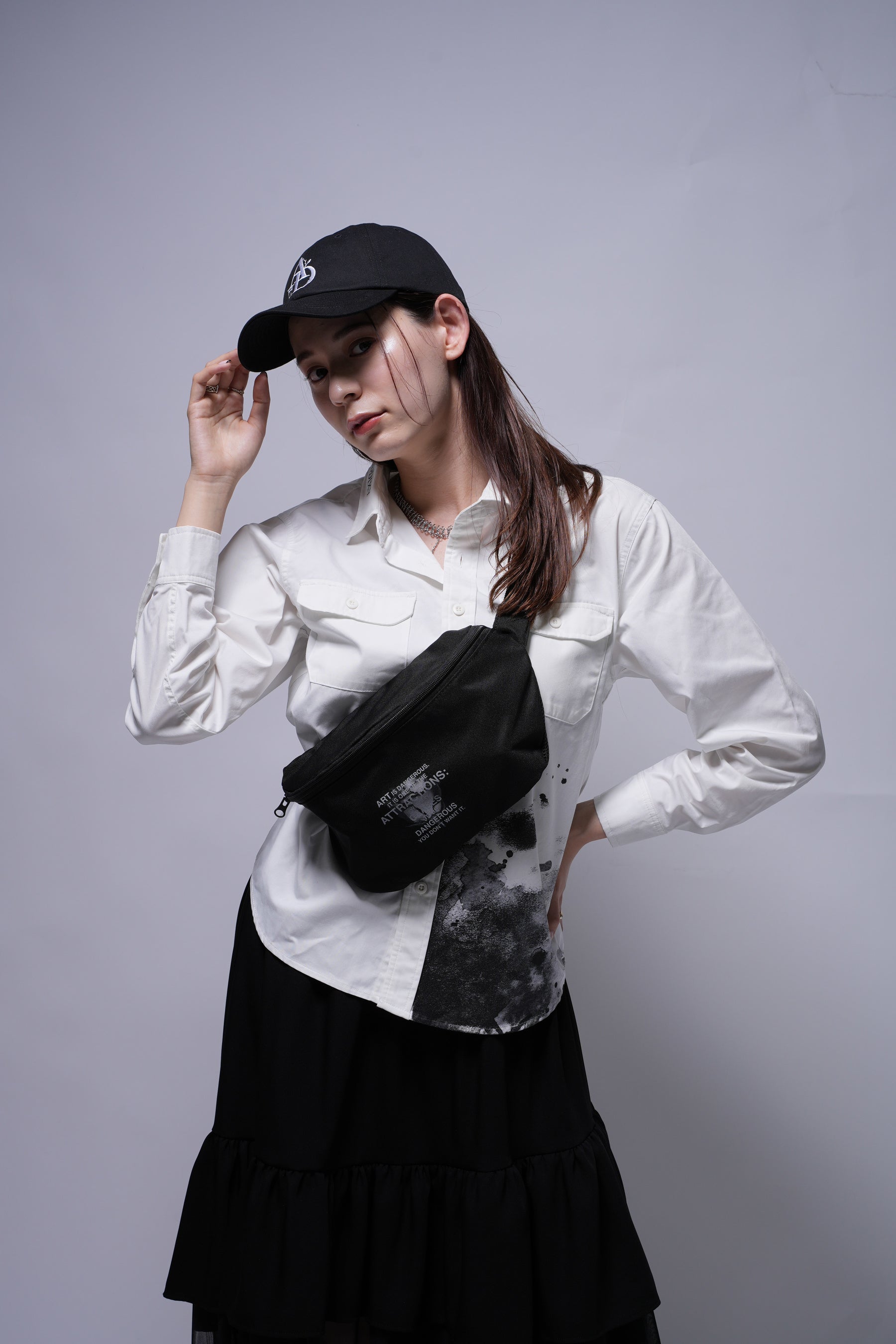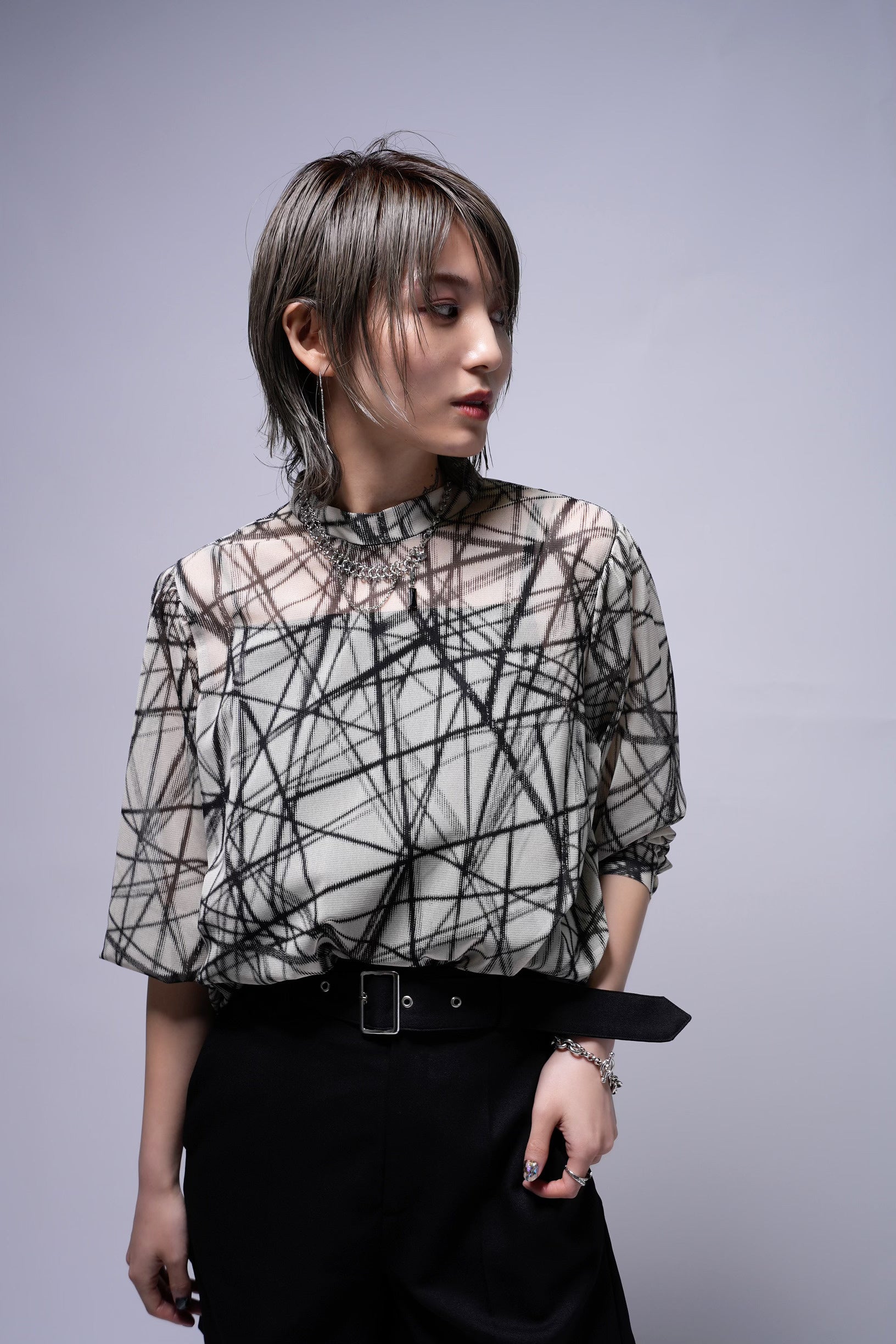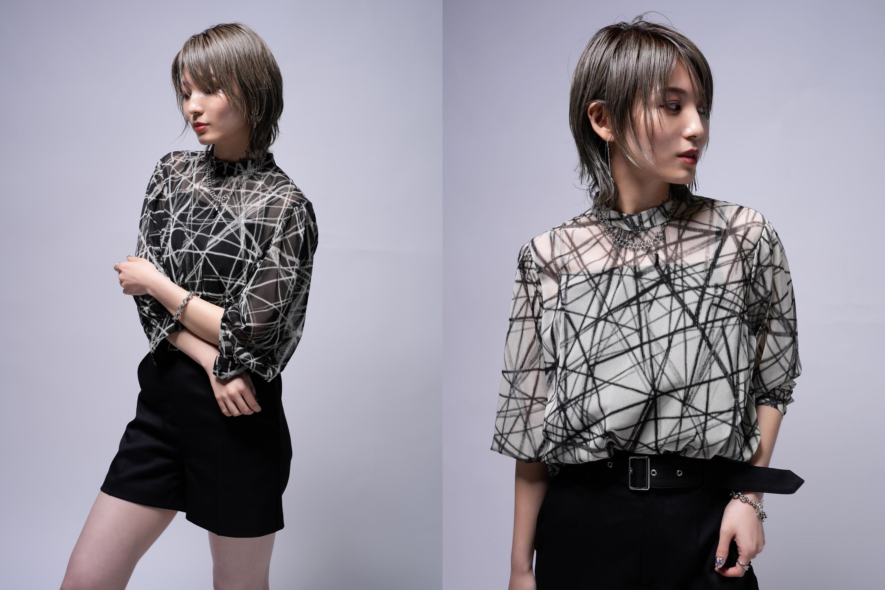 ▼2WAY CAMI SET 幾何学柄 SHEERブラウス (Black/White)¥16,800-(tax in)