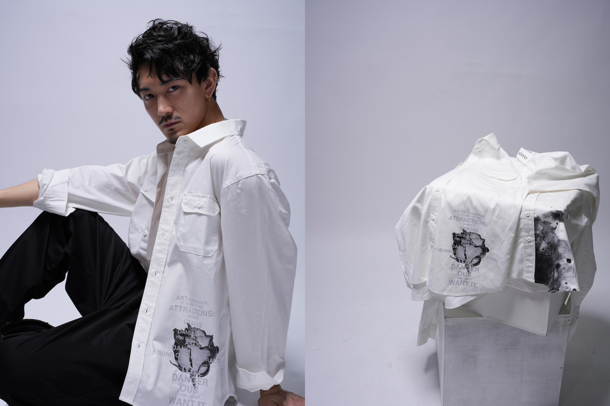 『ADDIXY』は、"RealMode & Rock"をコンセプトとし、「中毒性のある刺激を日常に」をテーマに会社員兼モデルとして活動する代表堀内が自らデザイナーを務め本年2月に立ち上げたD2Cアパレルブランド。ブランドデビューと同時に複数のメディアに掲載され、立ち上げから3ヶ月で今回初のポップアップストアを開催。