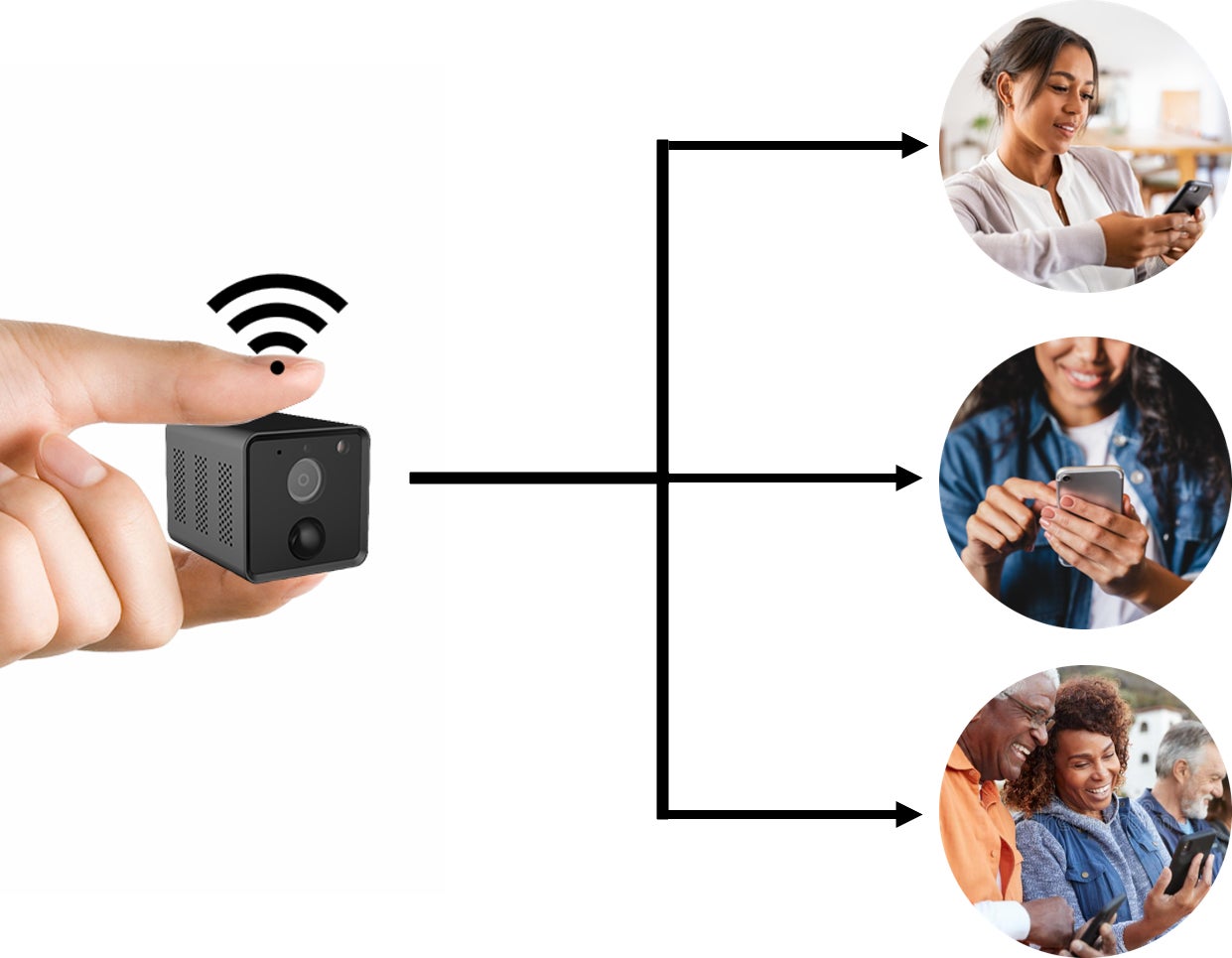 例えば自宅に設置したカメラの画像を、家族全員でそれぞれ違う場所から閲覧、操作可能です。家族や友人と安心と安全を共有できるため、活用の幅が広がります。