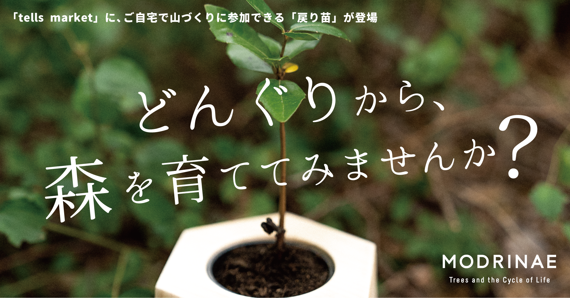 ICTとデザインの力でサステナブルな世界の実現を目指す株式会社Freewill (本社:東京都港区、代表取締役:麻場 俊行(Toshi Asaba)が運営する買い物をするだけで森が増えるエシカルマーケット「tells market」にて、株式会社ソマノベース(本社:和歌山県田辺市/代表取締役:奥川季花/以下、当社)は「MODRINAE(もどりなえ)」の販売をスタートします。MODRINAEは購入者が林業で使用される樹種を育て、苗木として山に返すことで、誰でも山づくりに参加できる新しいカタチの観葉植物です。