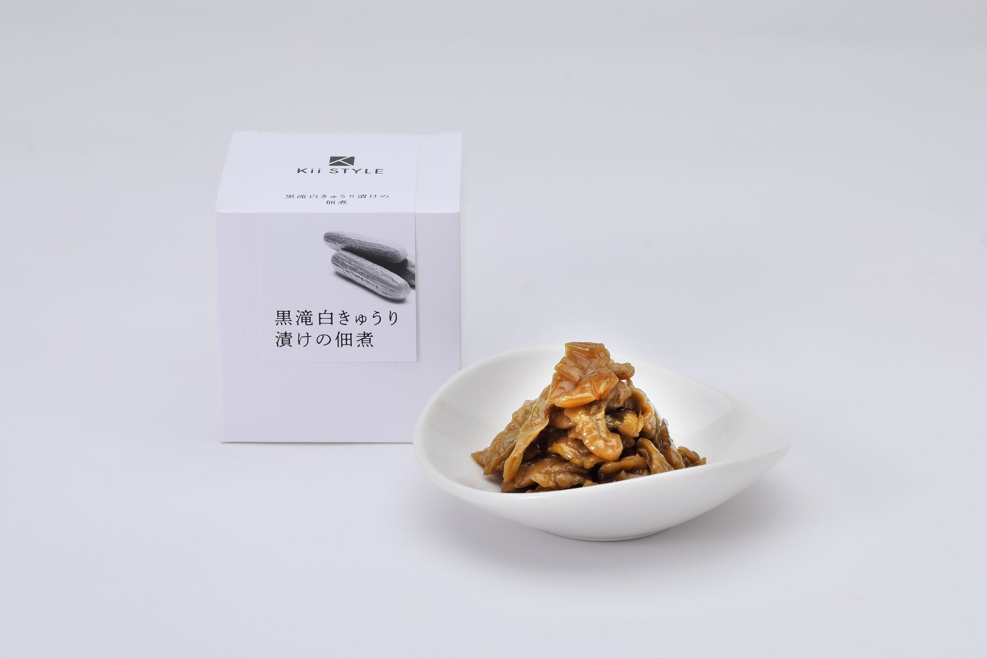 江戸時代から栽培されている大和伝統野菜のひとつ、黒滝白きゅうりのひね漬けを佃煮にしました。