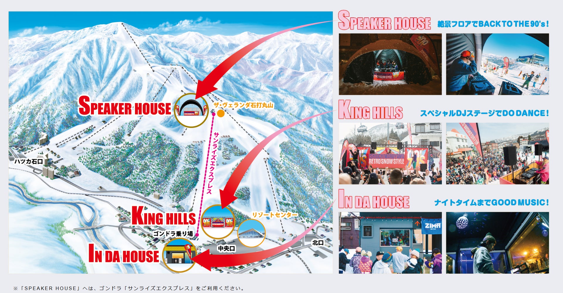 会場:石打丸山スキー場内(DJブースを3カ所設置予定)