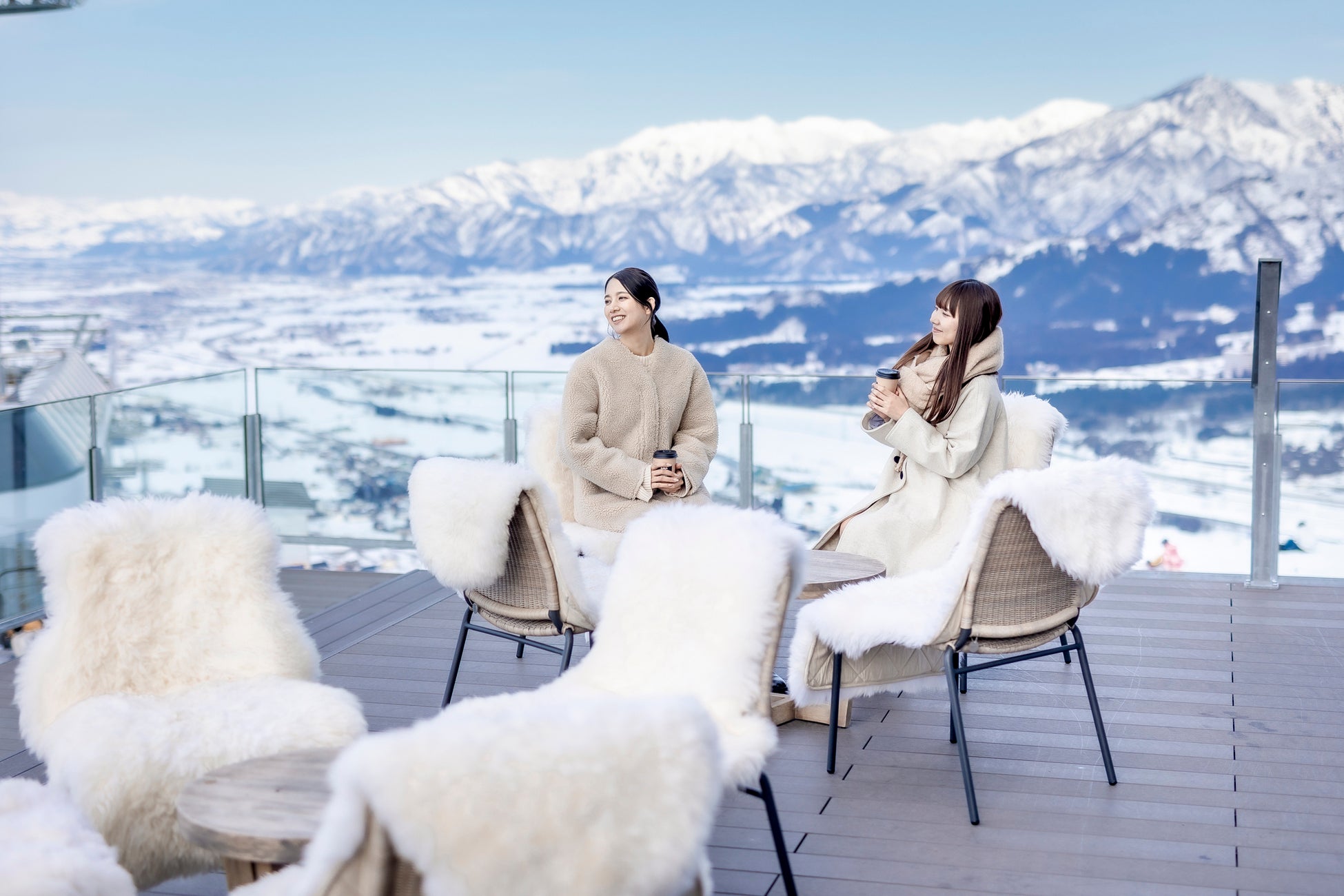 2018年に新設した世界最新鋭のゴンドラリフト「サンライズエクスプレス」や、2022年にオープンした展望テラス「ザ・ヴェランダ石打丸山」が話題を呼んでいます。スキーをしない方でも楽しめるこのスポットでは、美しい山々を眺めながらリラックスした時間を過ごすことができます。オシャレなカフェメニューも充実しており、写真映えする空間としても人気です。