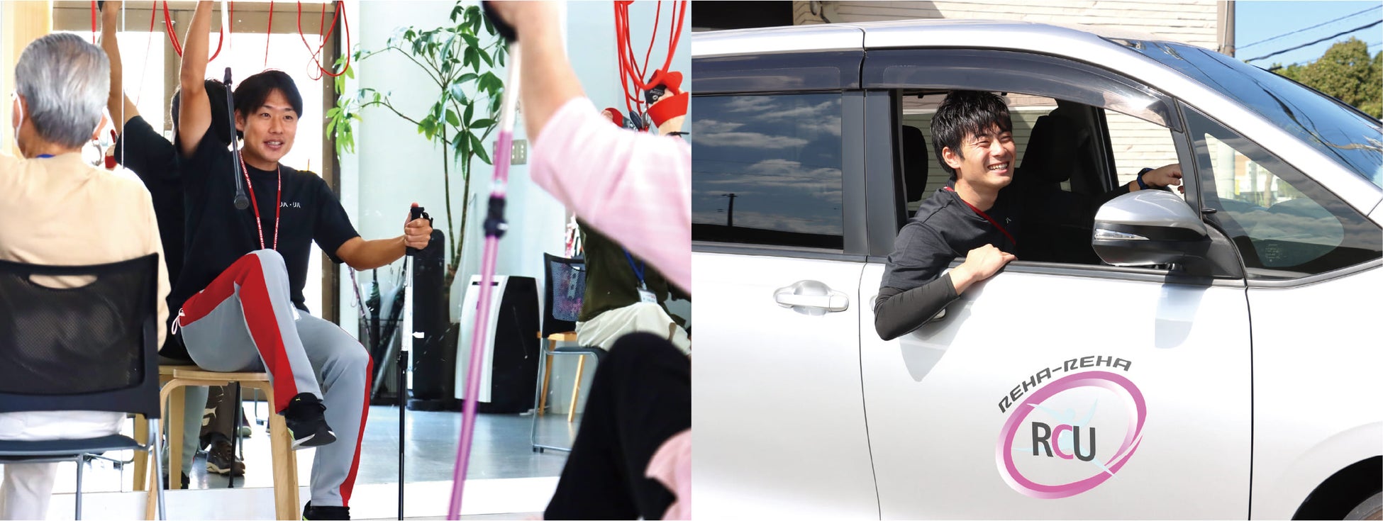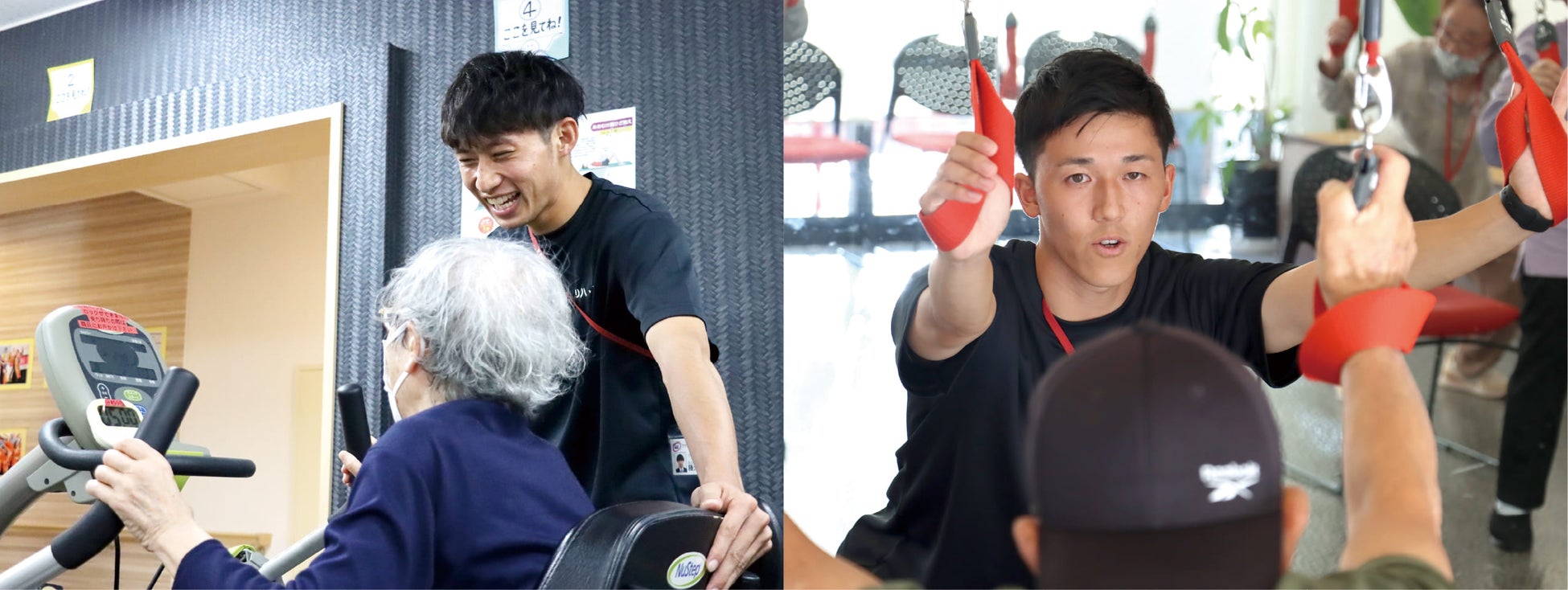 平日の日中は、当社のデイサービスで運動指導や専門的なサポート業務を行い利用者様たちと交流を深め、業務終了後の夜間に練習、休日には試合や大会に出場し、当社での勤務と両立しながら多忙な選手生活を送っています。