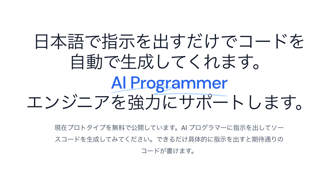 日本語で指示を出すとAIが自動でソースコードを書いてくれる「AI programmer」ベータ版をリリース