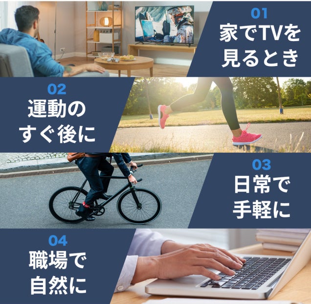 よくあるアイシングをタオルで巻いて固定するという習慣に代わる「もっと簡単で効率の良い方法はないのか?」を追求した結果、スリーブに挿入するという新しい形が出来上がりました。アイスパックをしっかりと固定できるため両手が開き、家事しながら・仕事しながら・テレビを見ながらのケアが可能です。