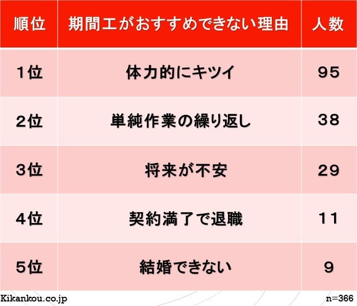 - 期間工がおすすめできない理由1位は「体力的にキツイ」
