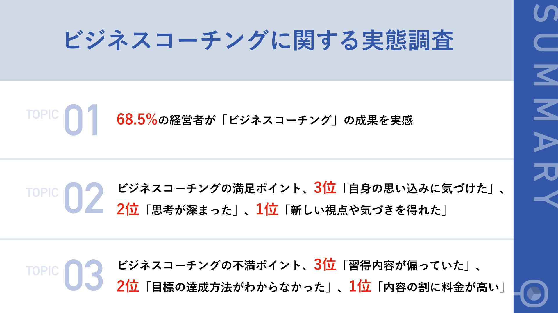 - 68.5%の経営者が「ビジネスコーチング」の成果を実感