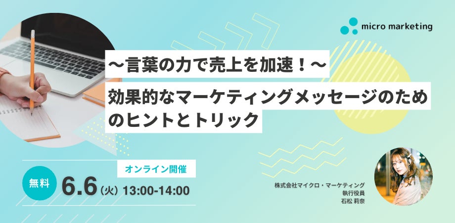 【マイクロ・マーケティング】『〜言葉の力で売上を加速!〜効果的なマーケティングメッセージのためのヒントとトリック』無料オンラインセミナー〜6月6日(火)13:00より開催〜