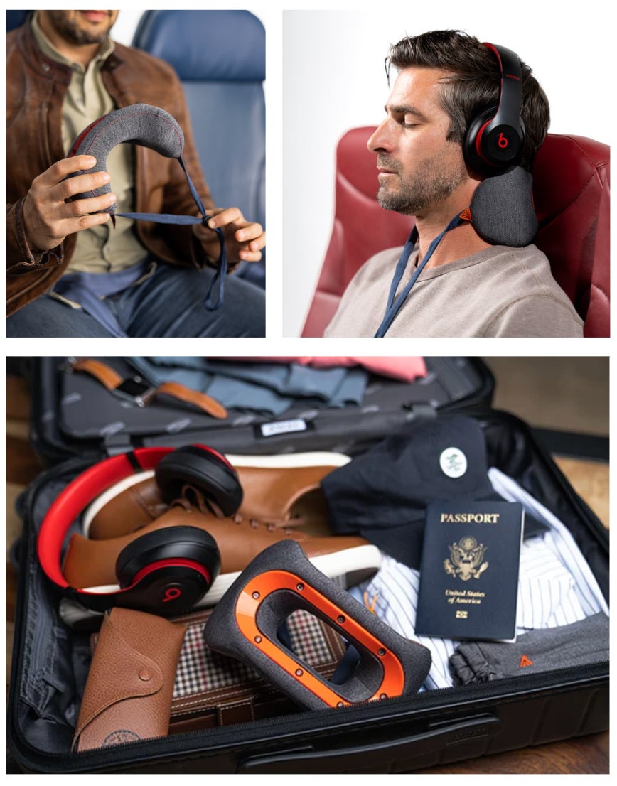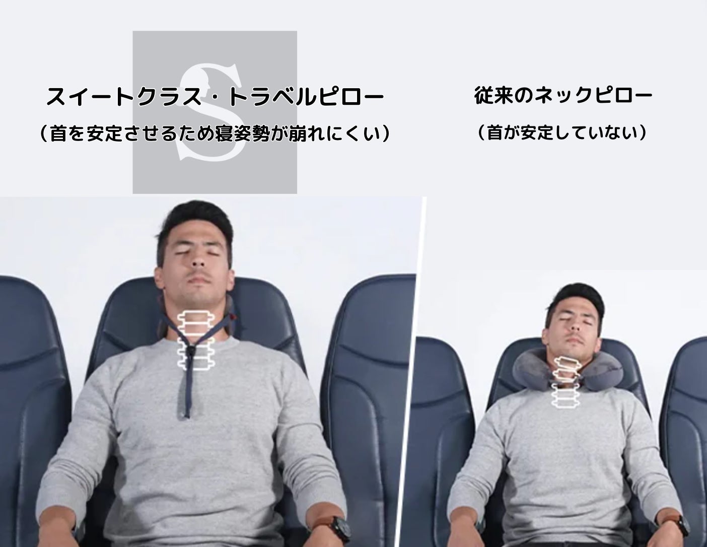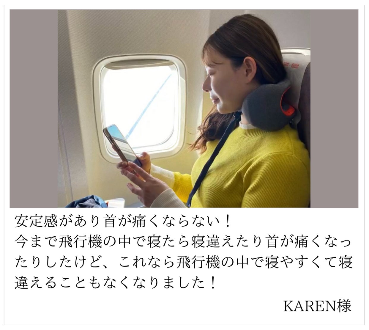 人間工学に基づいたこのピローは首を安定させ、機内や新幹線で極上のリラックスを味わえます。