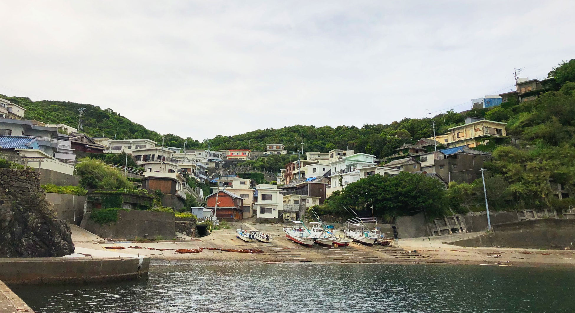 朝起きると鳥の声と共に船の音が響き渡り、バイクの走るどこか懐かしい音が続く。空気も海の色も美しく、その空気と青く澄んだ海の美しさが逆に人口減少を物語っているように感じました。