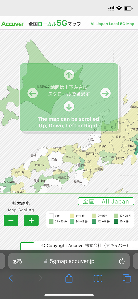 ローカル5Gマップ https://5gmap.accuver.jp/