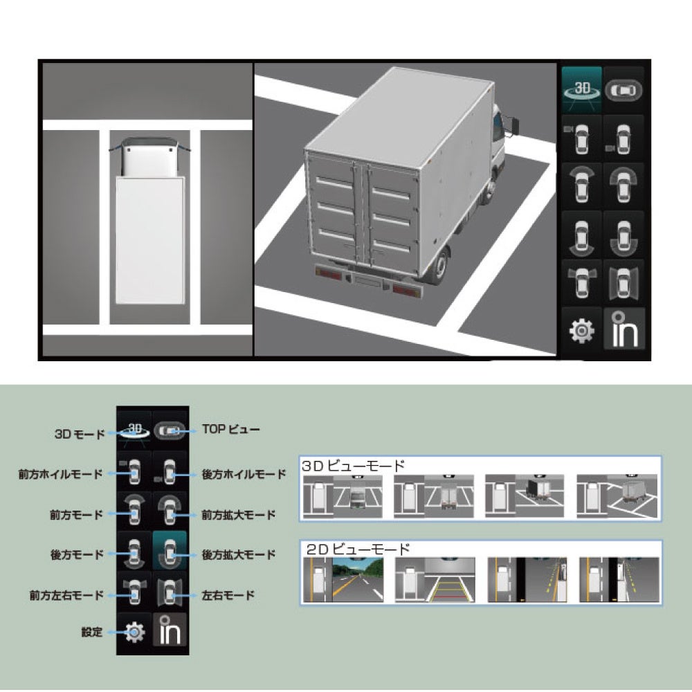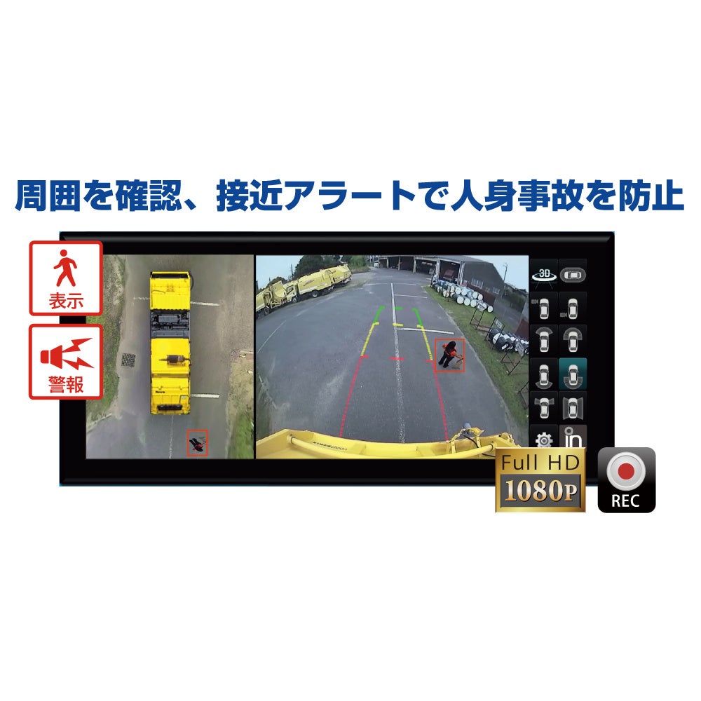 4つの高性能FullHDカメラで死角なく360°周囲の状況を把握できます。作業中はもちろん、出発前、駐車時に安全運転をサポートします。