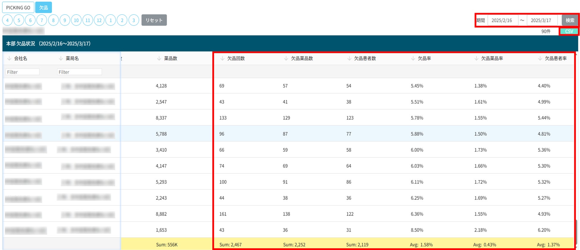本機能では、PICKING GOで登録された欠品について、運営指標となる各種の情報を抽出・可視化しブラウザ上で確認できるようになります。これにより、店舗で日々「どの程度の欠品が発生しているのか」や「何名の患者に対して欠品を生じさせてしまったのか」を店舗及び本部で簡単に把握・共有することができるようになり、今後の業務改善をよりスピーディーに行うことが可能になります。