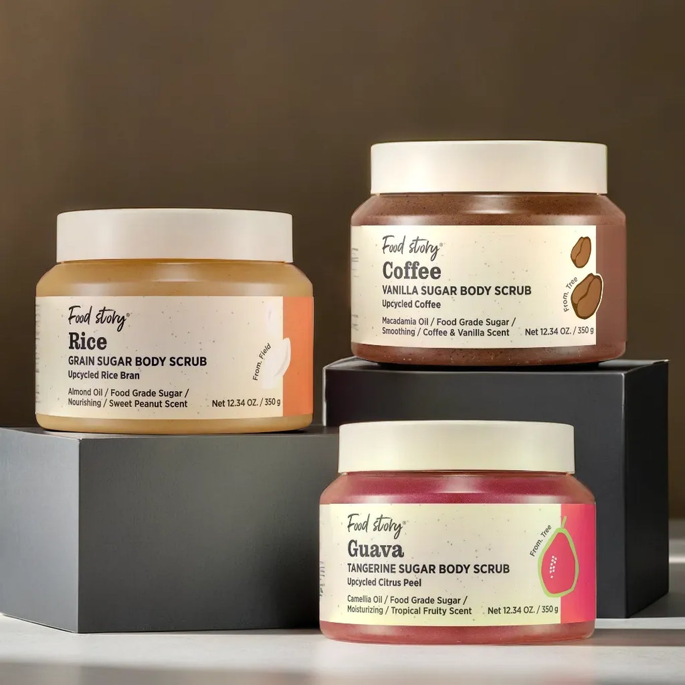 柔らかく溶け込むリアルシュガーで老廃物を落とし高保湿フォーミュラで保湿と栄養はそのまま伝えるシュガーボディスクラブライン