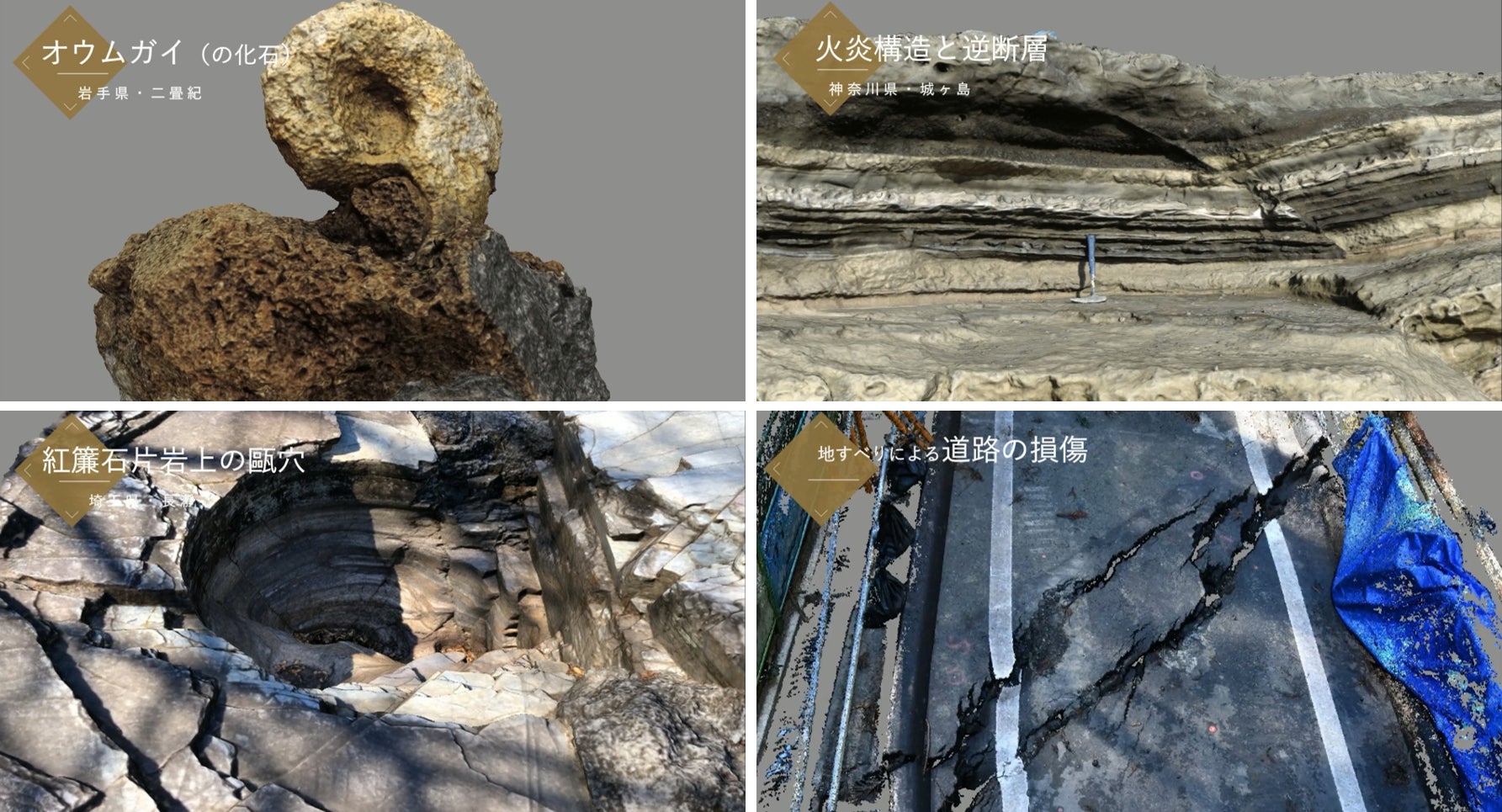 地質分野の現地踏査時や構造物の点検、災害調査などにSfMを活用することで、現地作業を軽減しながら、より詳細な3Dスケッチやデジタル空間内での計測といった成果を提供することができます。また、VR技術と組み合わせれば、遠隔地からも「現場感覚」を体感することができます。