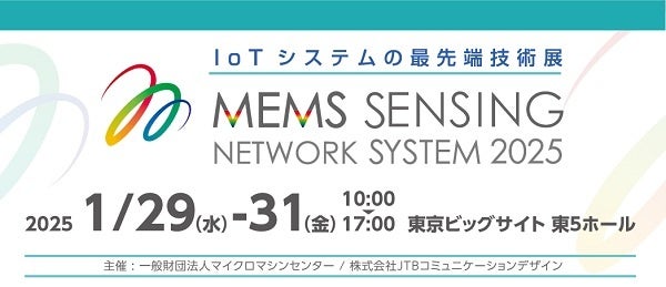 MEMSセンシング&ネットワークシステム展事務局(株式会社JTBコミュニケーションデザイン、以下JCD)は、一般財団法人マイクロマシンセンターと共催で、2025年1月29日(水)から1月31日(金)までの3日間、「MEMSセンシング&ネットワークシステム展2025」を東京ビッグサイト東5ホールにて開催いたします。