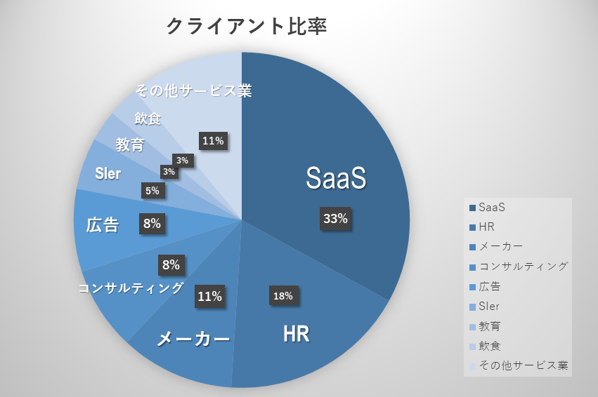ご支援させていただいている業界は多種多様で、SaaS、HR、メーカー、コンサルティング、広告、SIerなど様々な業界実績がございます。