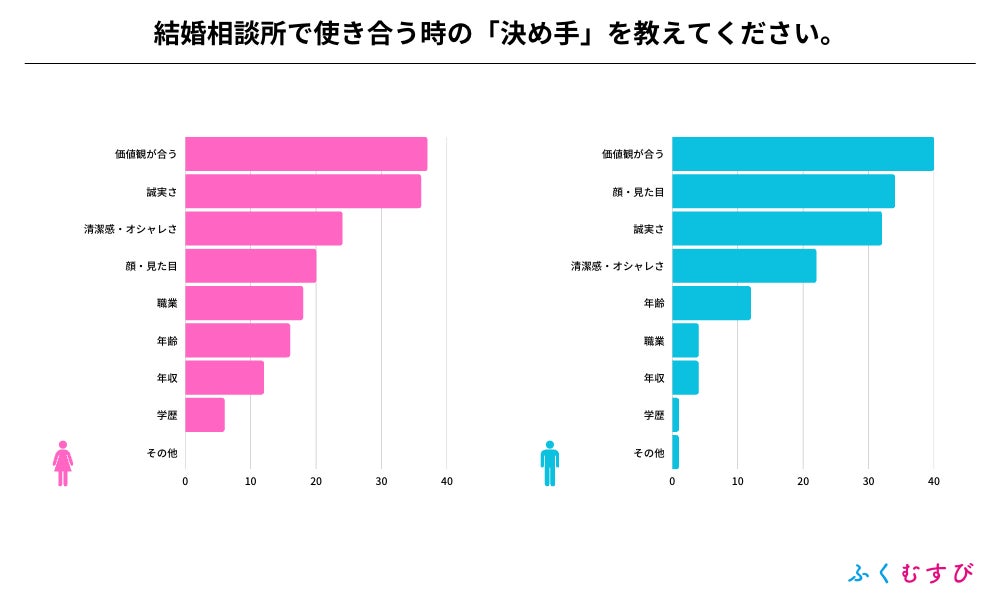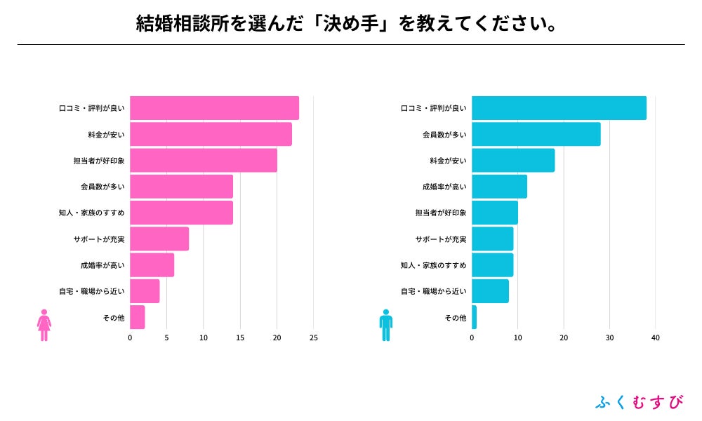 ・結婚相談所を選んだ決め手は、男女ともに口コミ・評判が1位でした。