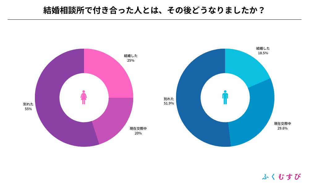 ・結婚相談所で付き合った人との成婚率は、女性が25%、男性が18.5%となりました。