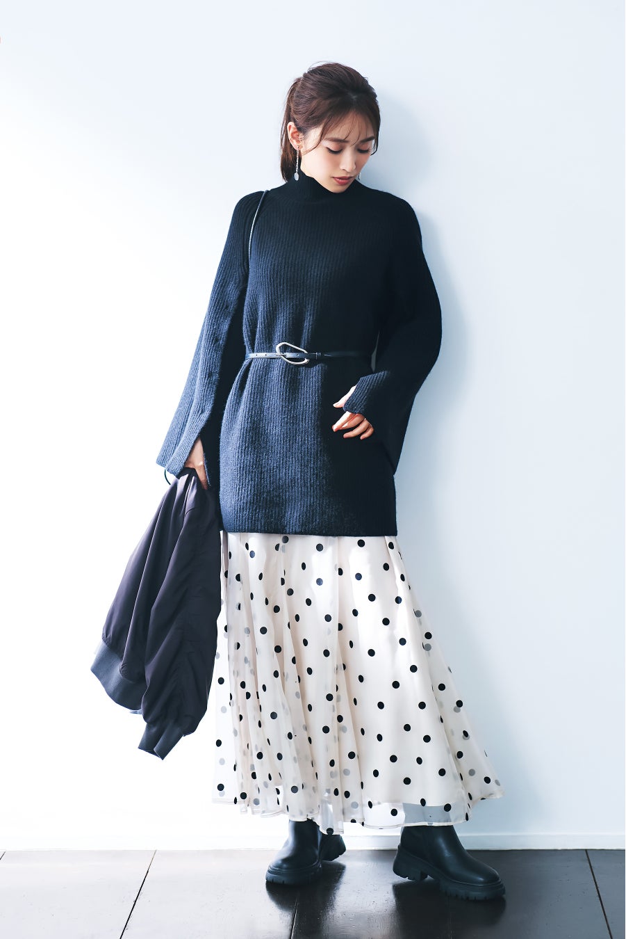 旬のミニワンピースとしても大人の女性が楽しめる着丈に。