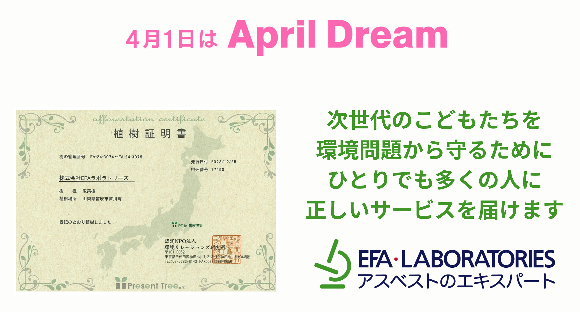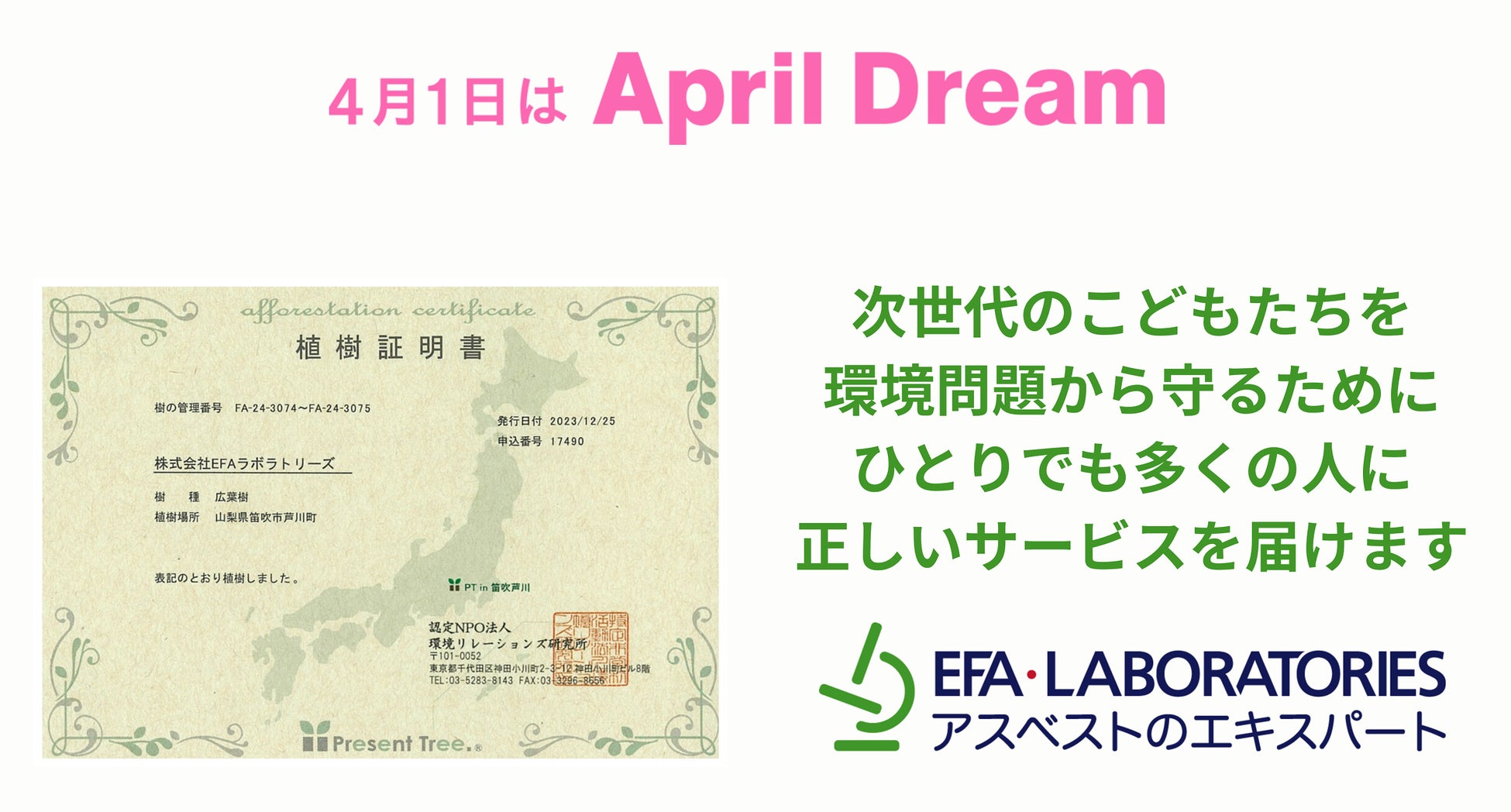 当社は、4月1日を夢を発信する日にしようとするApril Dreamに賛同しています。このプレスリリースは株式会社EFAラボラトリーズの夢です。