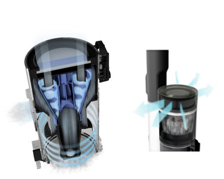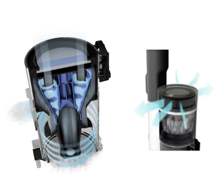 ✔ダストケースに格納されたサイクロンユニットが気流の力でゴミと空気を完全分離