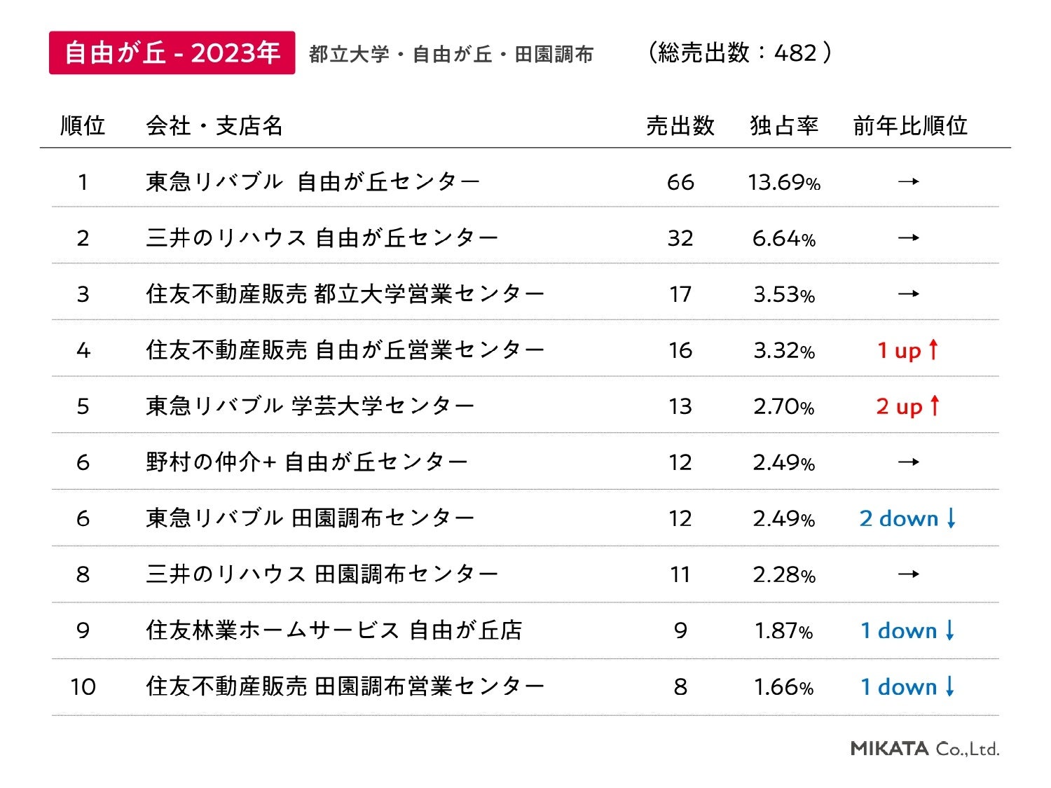 不動産会社のミカタ、城南エリアにおける売買仲介店舗の売出件数ランキングを発表。売主様から最も選ばれた店舗は?
