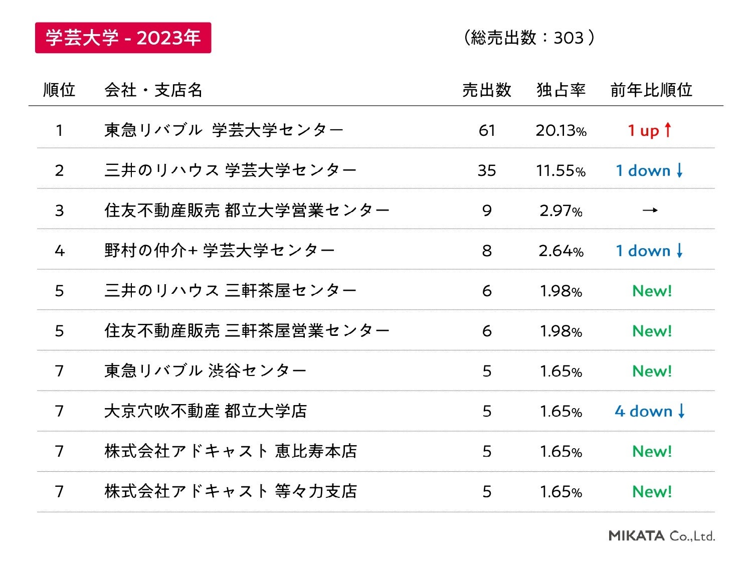 今まで「売買仲介のランキング」といえば、各社の営業エリアはあまり考慮されず、法人ごとに取扱高または仲介件数を計上した大規模な調査結果を目にする機会が多かったのではないでしょうか。本ランキングは、より現場に近しい目線で「エリアごとに最も売主から選ばれている店舗はどこなのか?」を可視化するために、支店ごとの年間売出件数を集計しました。自社顧客向けのアピール材料や、競合店舗の把握など、日々の営業活動にお役立ていただけますと幸いです。