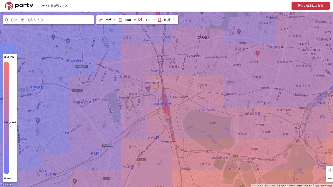 この度、ポルティ賃料査定で用いられている賃料予測アルゴリズムを応用し、地図上で家賃相場を確認できる「ポルティ家賃相場マップ」を公開いたしました。