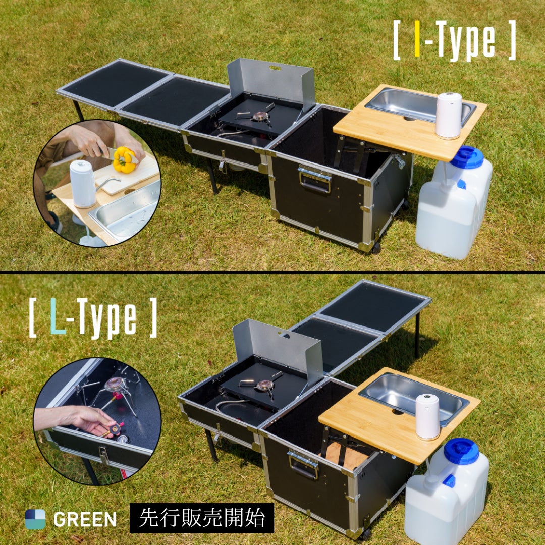 また、ソロキャンプ向けのIタイプや、バーベキューコンロや焚火台と組み合わせるLタイプなど、シーンに応じたレイアウトを楽しむことができます。