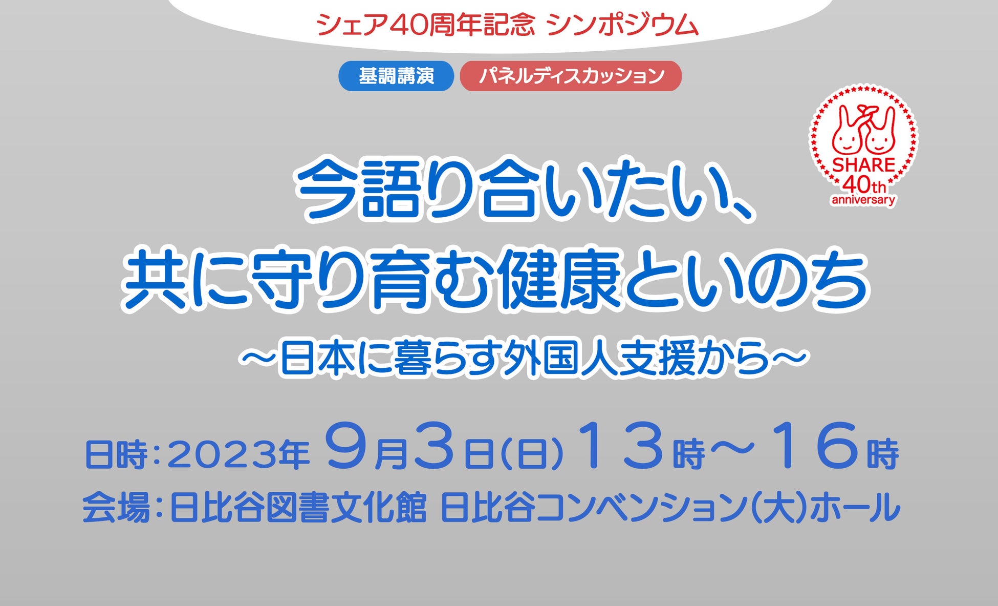 【今語り合いたい、共にまもり育む健康といのち~日本に暮らす外国人支援から~】9月3日(日)シェア40周年記念シンポジウム開催(現地・オンライン)