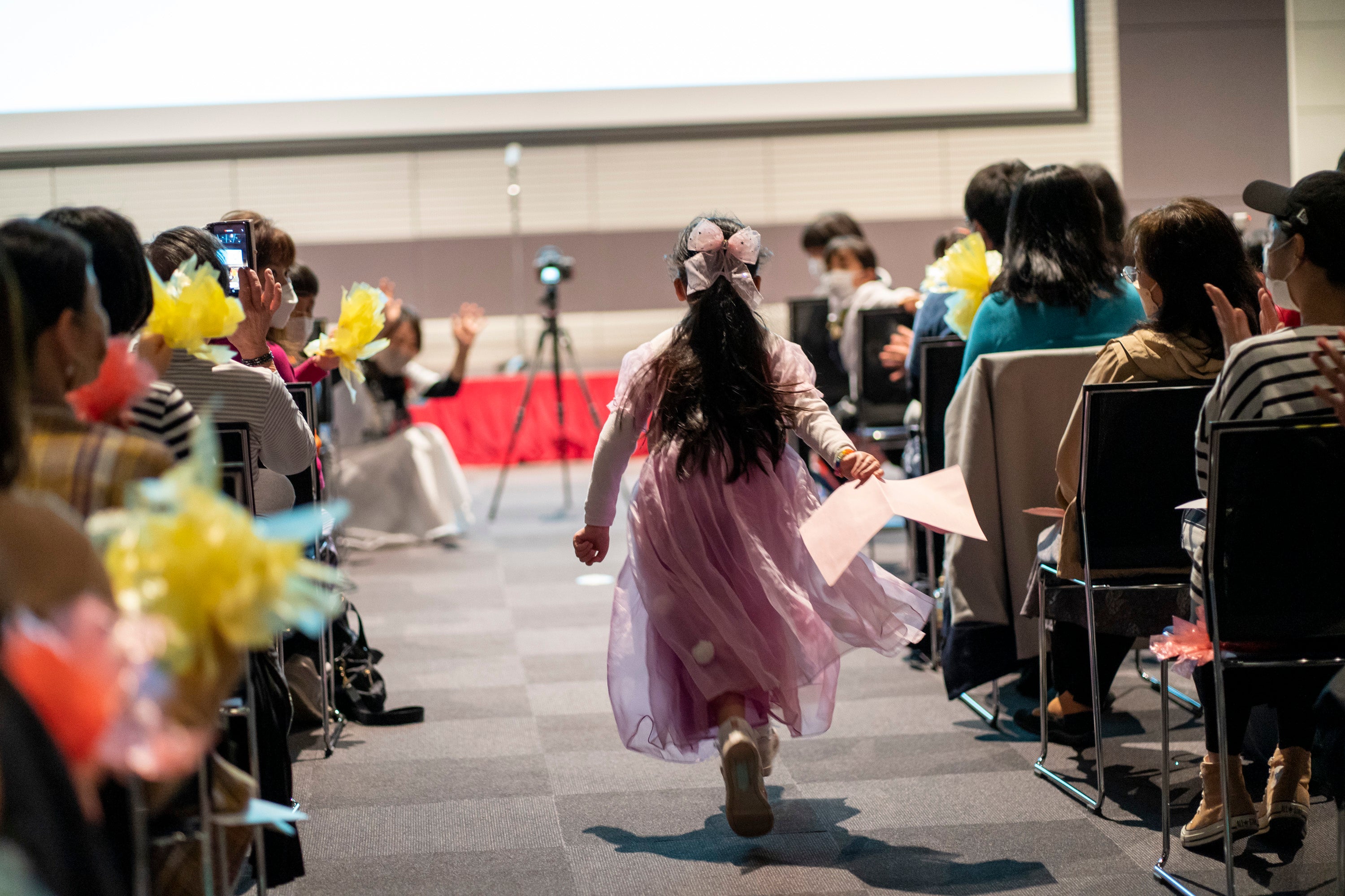 3ヶ月のプログラムをやりきった32名の子どもたちが、80名以上の観客の前で大きな舞台の中心に立ち、「自分の夢」「なぜそれをやりたいのか」「実現するとどうなるか」「叶えるために何をするか」を発表しました。