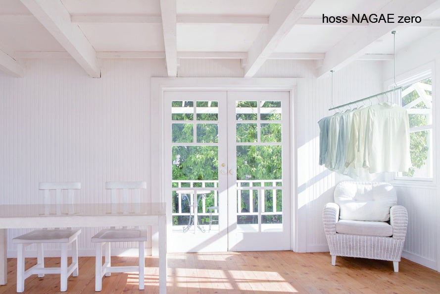 hoss NAGAEがラインナップする室内物干しのアイテムは限られた室内空間において、物干しスペースを効果的に確保しつつ生活環境を圧迫しないことを目標に開発されました。
