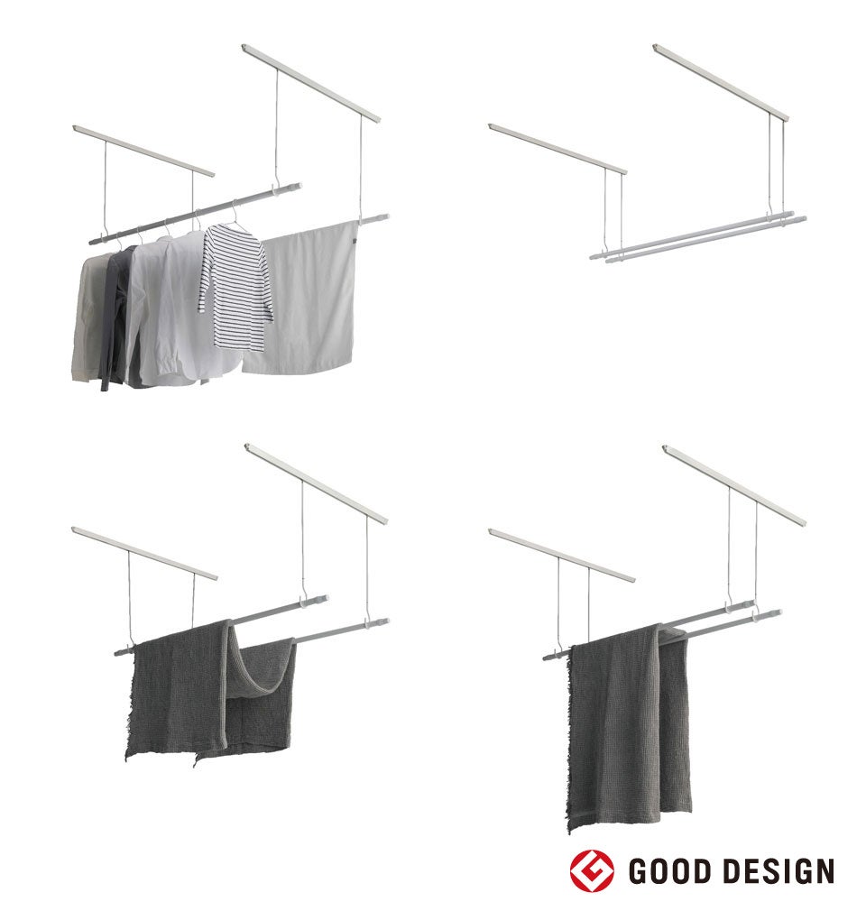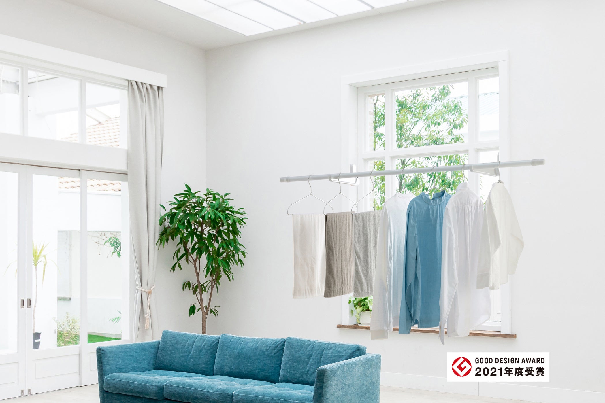 生活空間に溶け込むシンプルなデザインでありながら室内物干しに求められる機能をアップデート