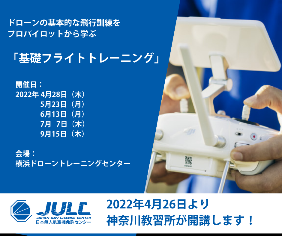 無人航空機の操縦に関する教育、指導および資格認定、検定試験を展開する日本無人航空機免許センター株式会社(本社:東京都中央区、代表取締役:松本 篤史、以下 JULC)は、ドローン飛行訓練の効率化を支援するため、ドローンの基本的な飛行訓練が学べる講習を、神奈川教習所にて2022年4月28日より開講し、講習スケジュールを公開しました。