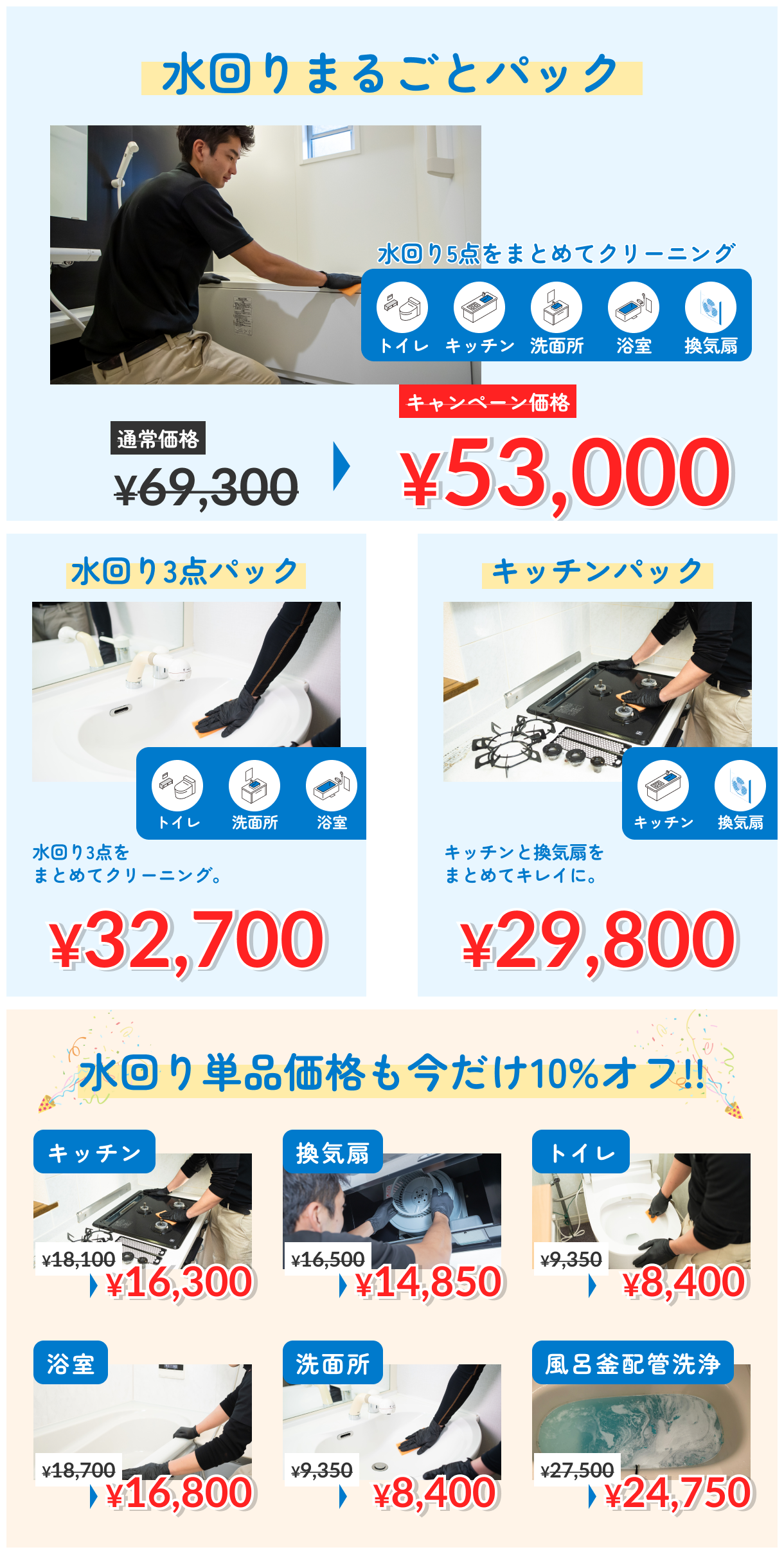 水回りの汚れや掃除に悩まれている方は、ぜひこの機会に水回りのハウスクリーニングをご利用ください。
