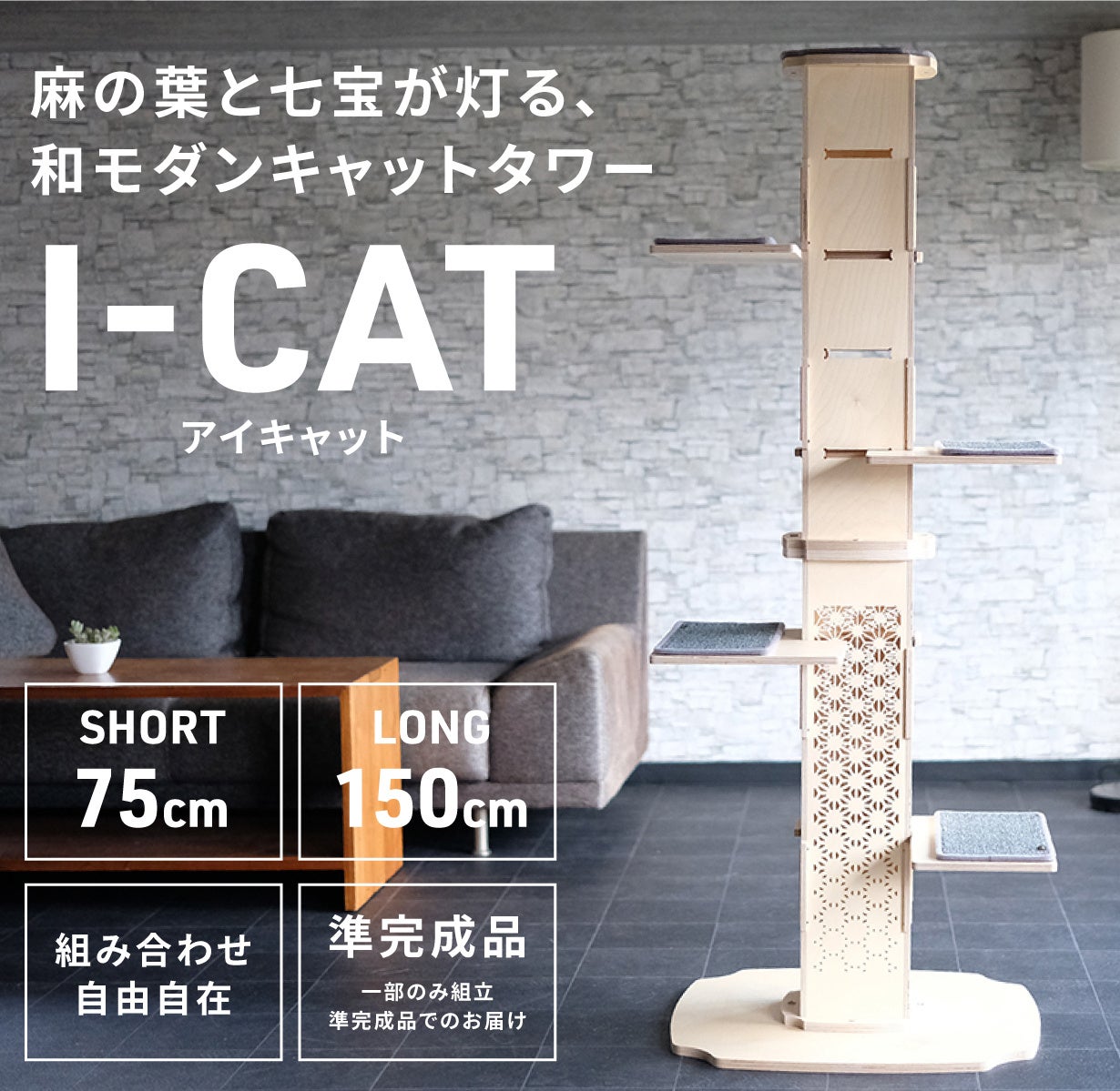 「猫のための家具が、部屋の雰囲気を壊すことなく“置きたくなるインテリア”になるよう和柄デザインにこだわりました。I-CATの品質はそのままに、暮らしに寄り添う一台としてお届けします。」