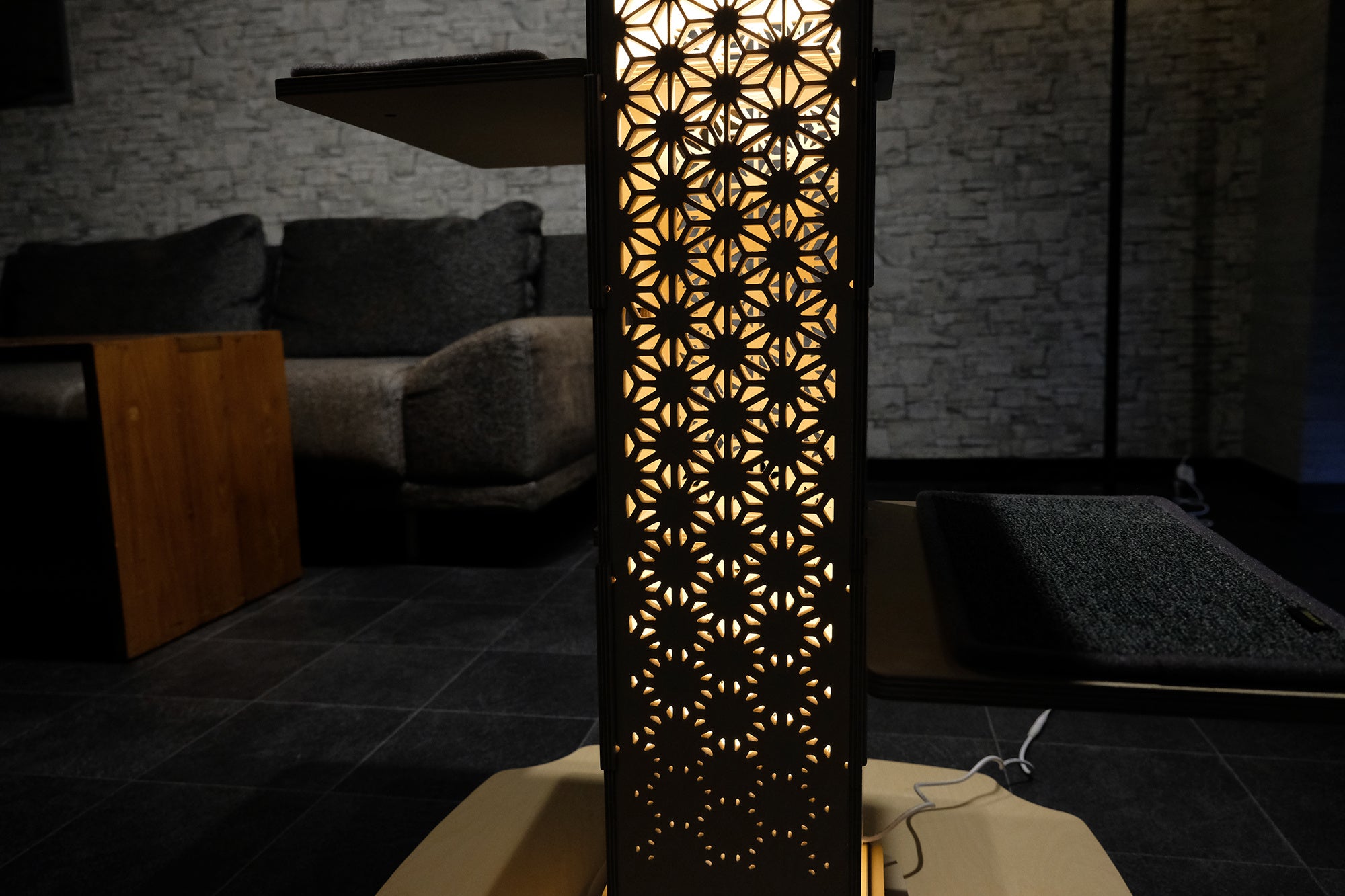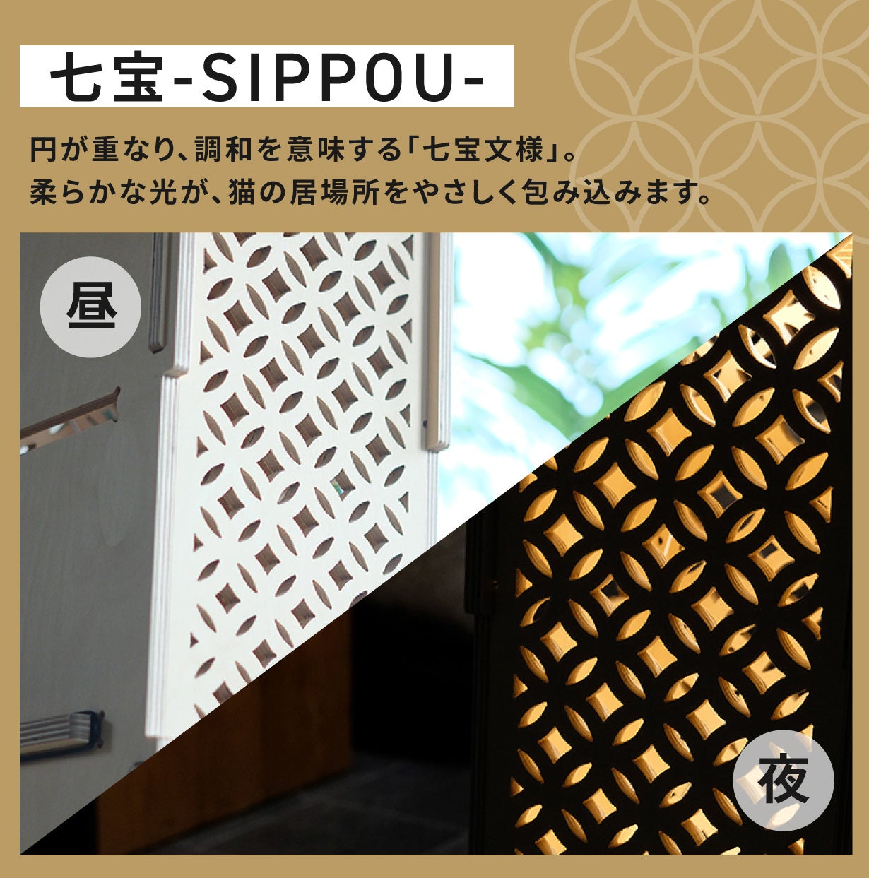 新モデルは、麻の葉・七宝の日本的な紋様切り抜きを施した上質でシックなキャットタワーです。