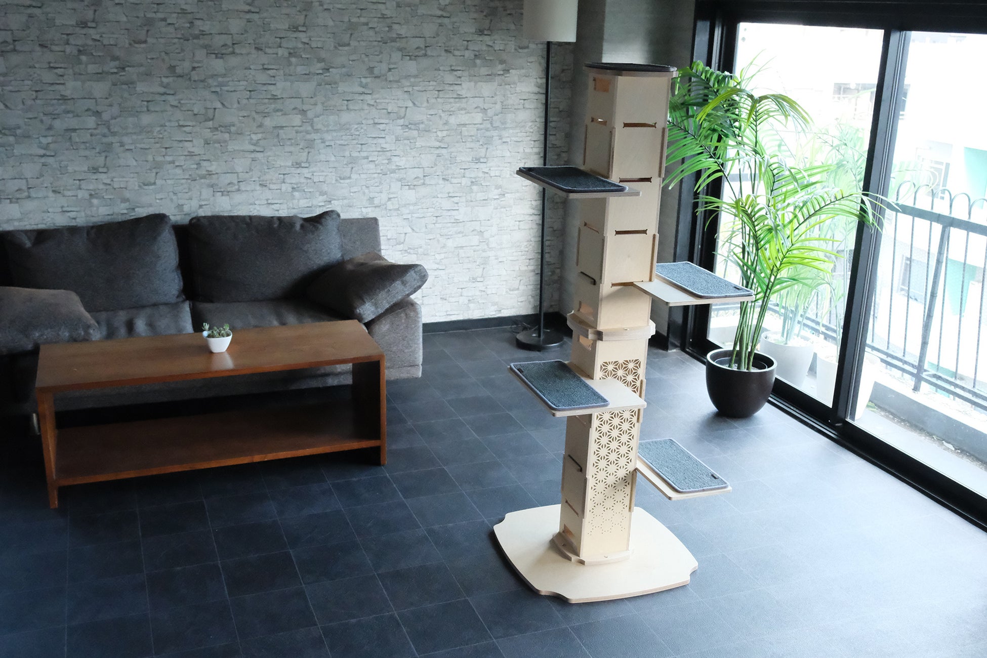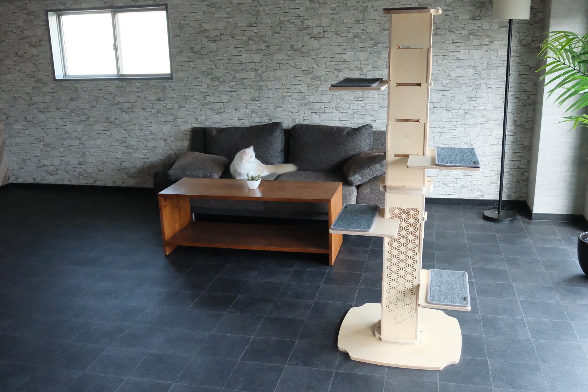 キャットタワーを“飼い主が我慢して置くもの”ではなく、“暮らしを豊かにするインテリア”としてデザイン。和室はもちろん、北欧テイスト、モダンルーム、シンプルなワンルームにも無理なくフィットします。