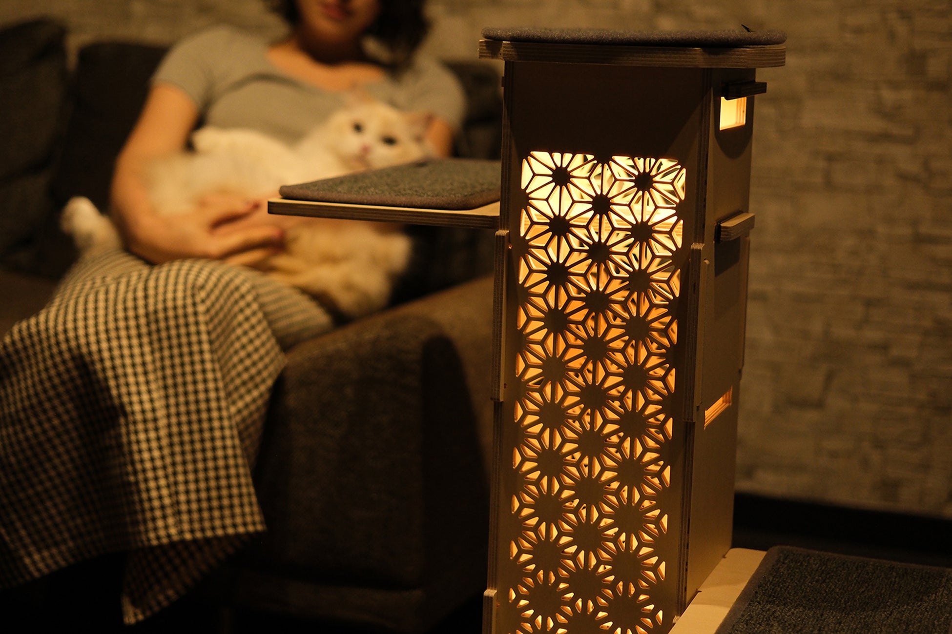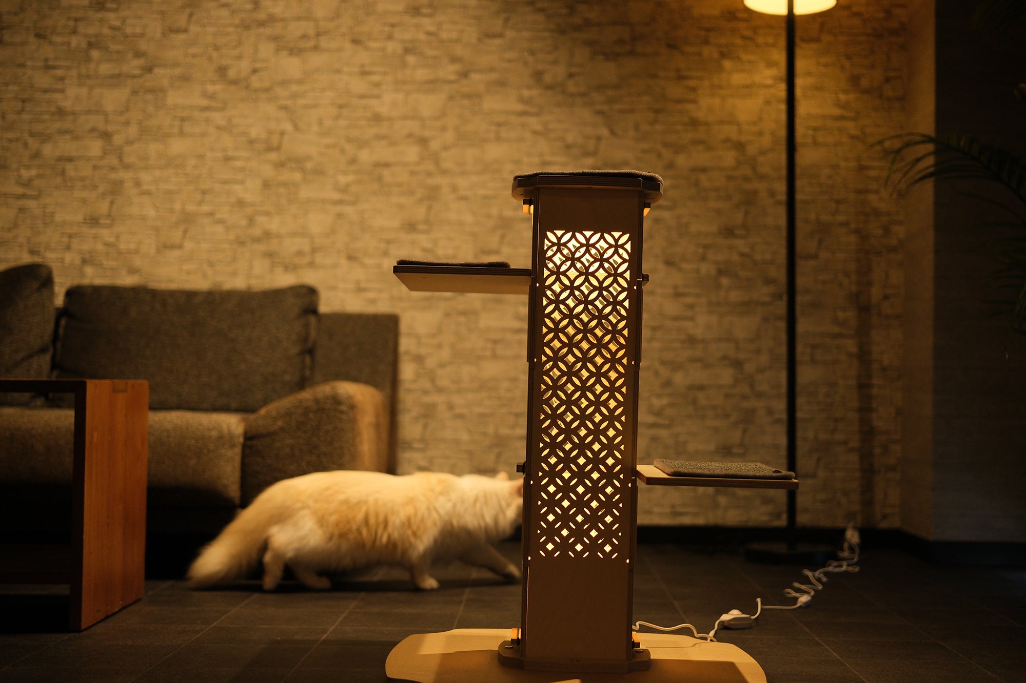 猫のいる空間が静かな灯りで満たされ、猫と人のどちらにとっても心地よい夜時間が生まれます。
