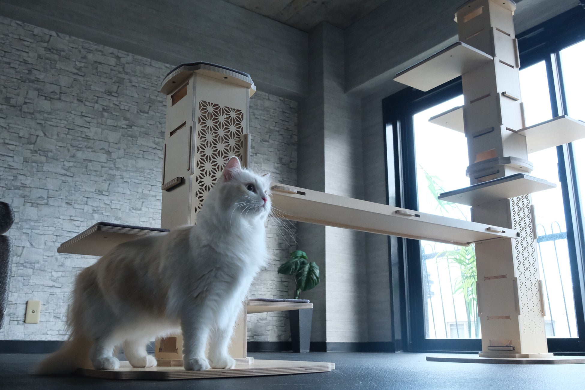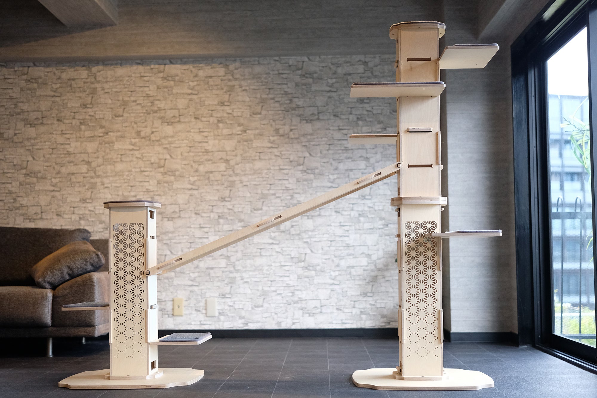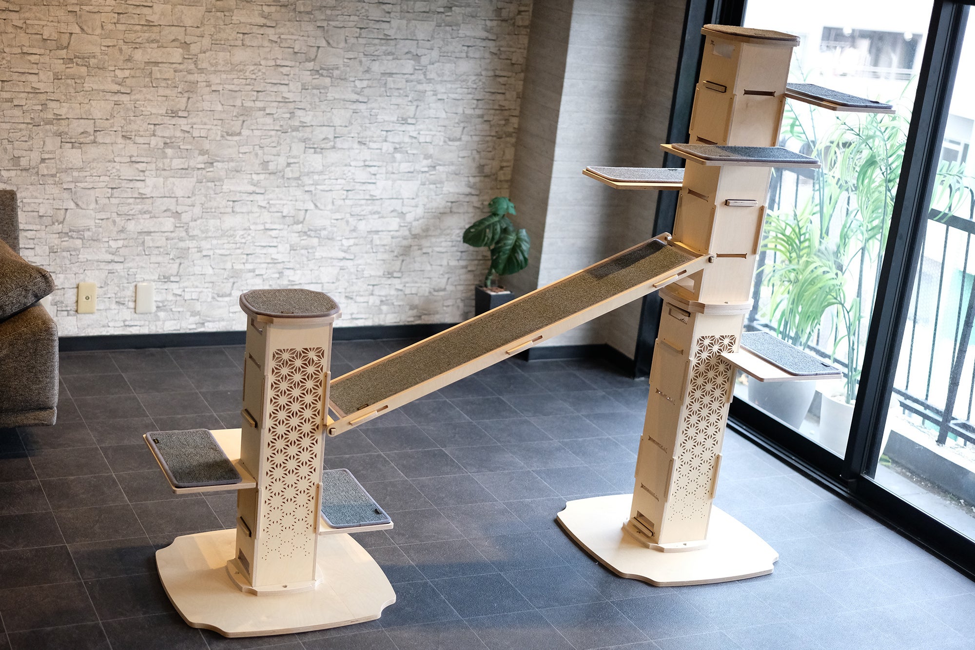 猫の遊び場でありながら、和モダンインテリアとして成立する“魅せるキャットタワー”を目指しました。