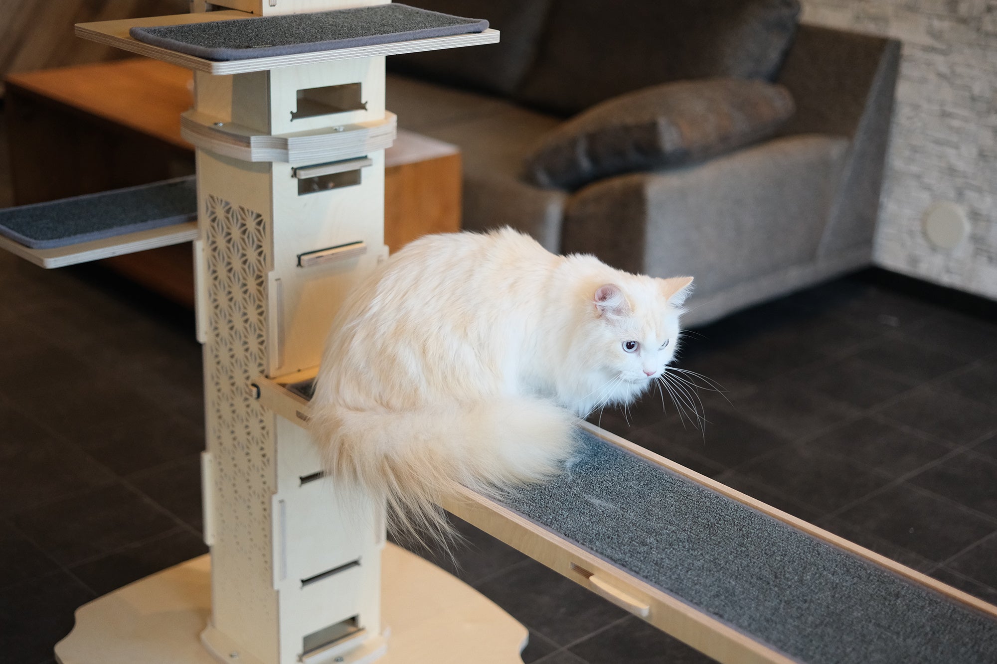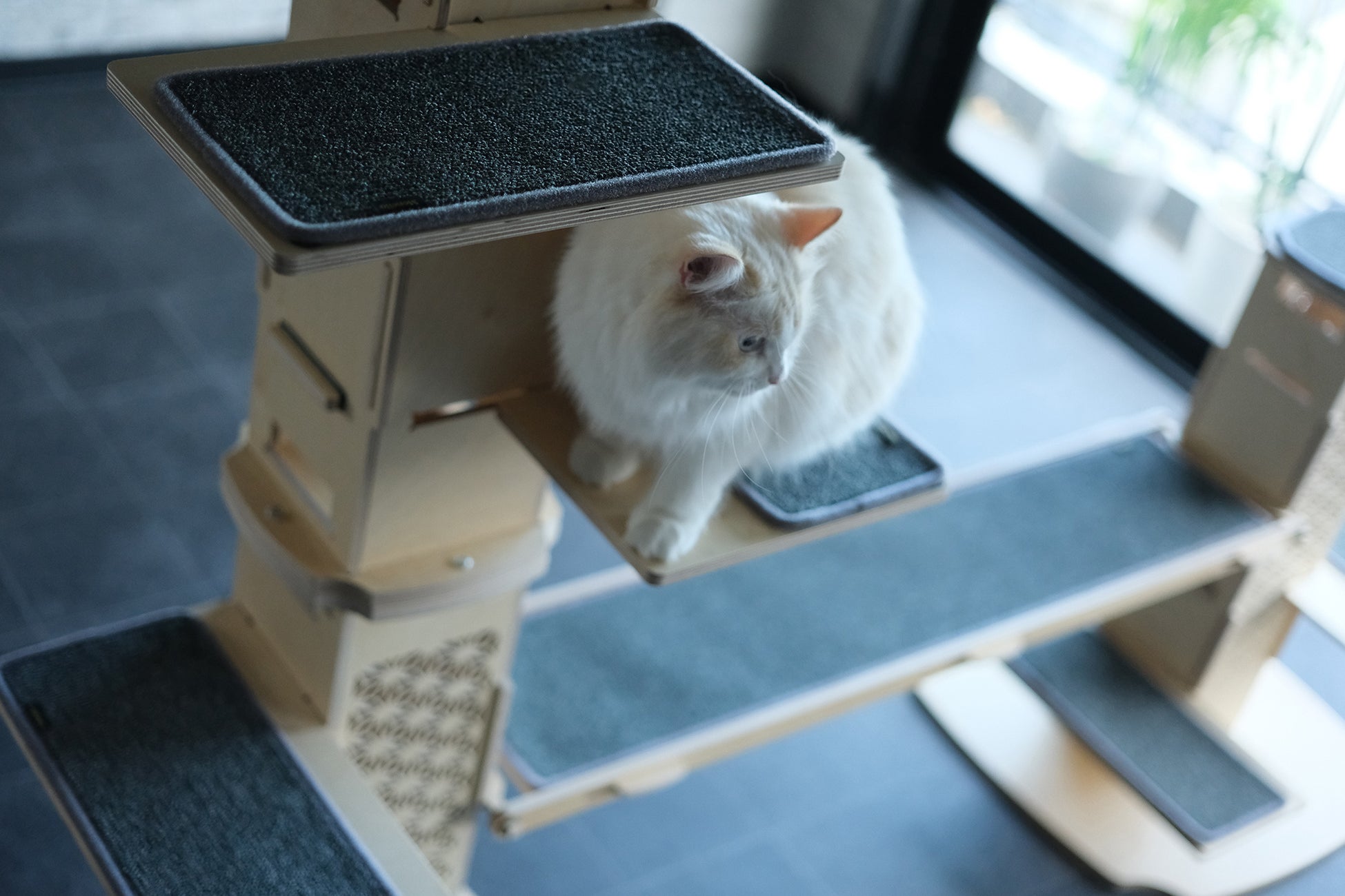 本モデルは、同社の人気シリーズ「I-CAT」と同じ品質基準で設計されており、猫が安心して使える安定性と耐久性を備えながら、家具としても美しく飾れる上質な佇まいを実現しました。