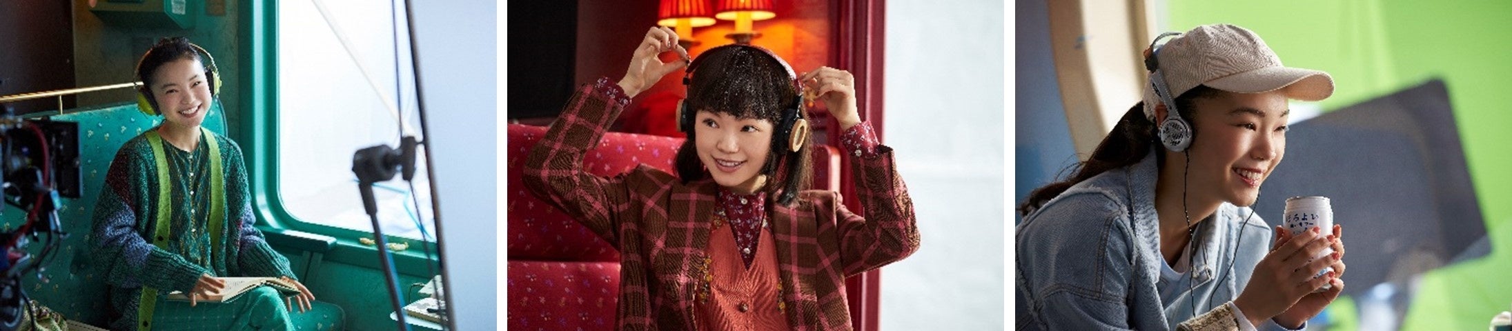 そして、実写ver.に出演する古川琴音さんは、フレーバーに合わせて多彩に変化する色合いを衣装やヘアメイクでも表現。少し開いた窓から落ち葉が吹き込む中、すれ違う列車へ元気よく手を振る姿やたくさんの気球が浮かぶ車窓の風景に身を乗り出すなど、表情豊かに3タイプの主人公を演じています。