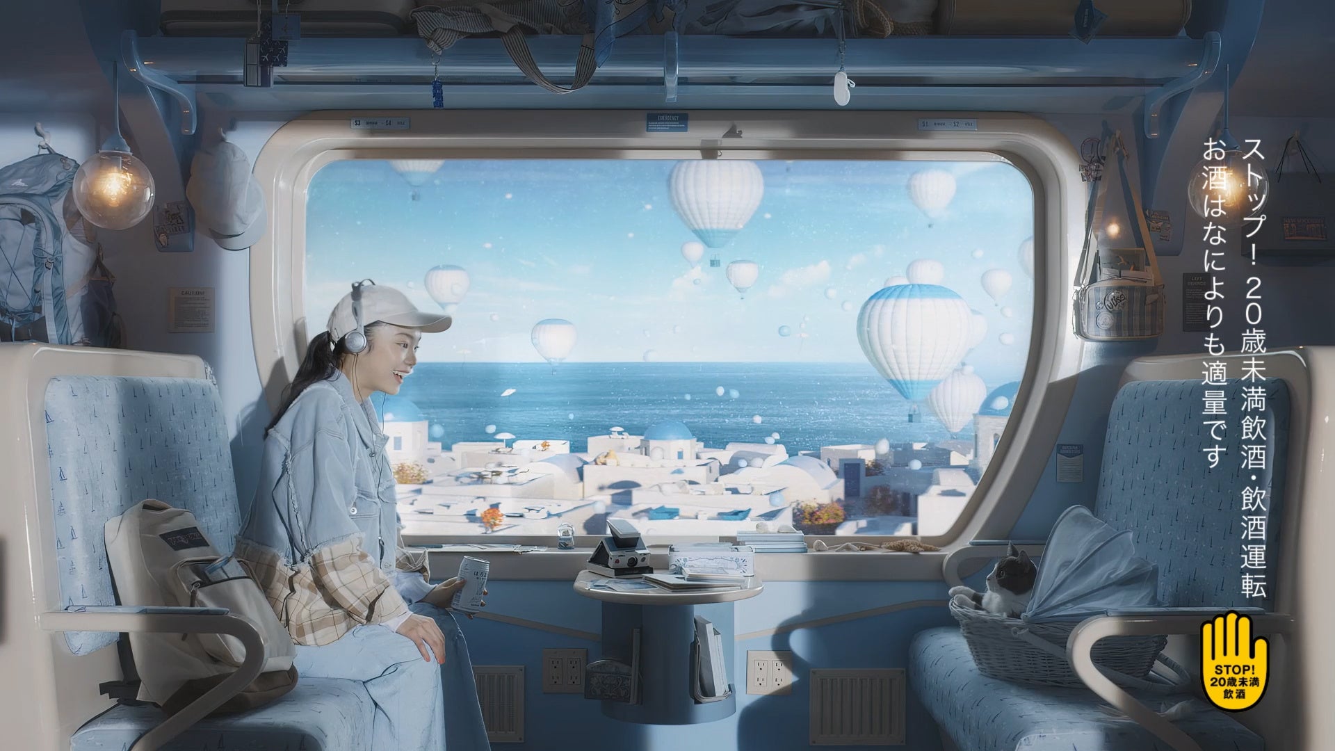 この〈ライムジントニック〉と〈フルーツサングリア〉の発売にあたり公開となる、今回の第3弾の新TV-CMには、第1弾に続き古川琴音さんが出演。車窓を舞台として、外の世界を楽しみながら、「ほろよい」で過ごす時間の心地良さを描いています。話題のマッシュアップ楽曲も「Yuri on ICE」が加わって更にパワーアップし、秋の行楽シーズンに心地よく旅を楽しむ主人公の様子に、ぜひご注目ください。