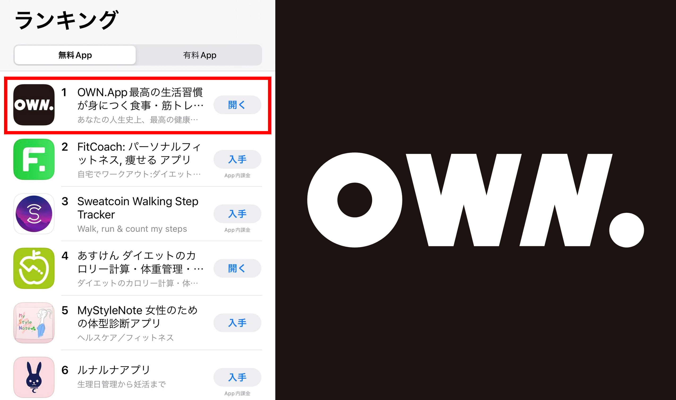 【ランキング1位】「OWN.」がAppStore(無料ヘルスケア/フィットネス/国内)で1位|東京通信