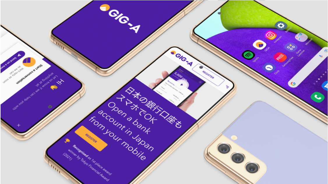 「GIG-A(ギガー)」は、多言語で金融サービス体験を提供するプラットフォームです。東京きらぼしフィナンシャルグループ傘下の株式会社 UI 銀行との API 連携により、銀行口座の開設から、その後の日々のバンキング(送金な ど)を多言語、アプリからモバイルのみで完結するBaaS型のプラットフォームです。